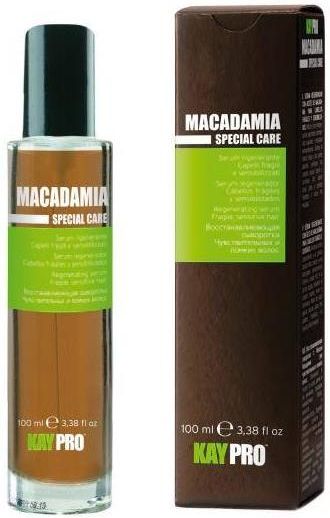 KayPro Macadamia Serum 100ml Olejek z orzecha makadamia. Poznaj jego właściwości! Olej makadamia zawiera bardzo dużo nienasyconych kwasów tłuszczowych, minerałów i witamin, dzięki którym jest silnym przeciwutleniaczem. To idealny olejek do włosów wymagających wsparcia: słabych, delikatnych i łamliwych. Doskonale nawilża, ochrania i regeneruje przywracając im blask. Regenerujące serum z olejem z orzecha makadamia do cienkich i łamliwych włosów. Nawilża i odżywia włosy na całej długości oraz końcówki, którym nadaje blasku i miękkości. Eliminuje rozdwajanie się końcówek. KAYPRO Special Care MACADAMIA – skuteczny program regeneracyjny do włosów delikatnych i słabych. Poznaj i zastosuj cały Program do pielęgnacji i regeneracji włosów na bazie olejku makadamia. Dostarcz swoim słabym i łamliwym włosom odpowiednich witamin i minerałów. Sposób użycia: Nałożyć na mokre lub suche włosy. Nie spłukiwać. Pojemność: 100ml
