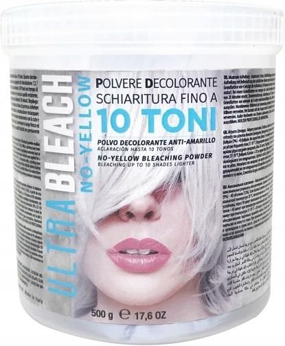Puder rozjaśniający do włosów - 500g Anty - żółty i anty-fioletowy puder rozjaśniający zawierający oligosacharyd i beta d-fructozę. W trakcie zabiegu rozjaśniania do 10 tonów. Posiada unikalną formułę pudrową, która zapewnia działanie pielęgnacyjne przy zachowaniu bezpieczeństwa dla struktury włosów. Pozwala uzyskać naturalne rozjaśnienie, dzięki czemu naturalny połysk włosów i zdrowy wygląd. Kosmetyk polecany jest do wszystkich technik rozjaśniania. Sposób użycia: Proporcja rozrabiania 1:2 z wodami utlenionymi 10 vol (3%), 20 vol (6%), 30 vol (9%) oraz 40 vol (12%). Gdy puder nałoży na włosy na poziomie 4, rozjaśnia na do 4-5 tonów pozostawiony na 45 minut; kiedy rozjaśniamy o 8-9 tonów, trzymamy 90 minut w naturalnym; potem kiedy rozjaśniamy o 10 tonów, trzymamy 90 minut z ogrzewania, bądź przedłużamy czas o 20 minut. Podsumowanie: 5-6 tonów rozjaśnienia - 45 minut w korekcie 8 tonów rozjaśnienia - 90 minut w naturalnym 9 tonów rozjaśnienia - 90 minut w temperaturze 37-39 st C 10 tonów rozjaśnienia - 90 minut w temperaturze 37-39 st C + 20 minut, kiedy zaczynamy od poziomu poniżej 4 i mamy do włosów z włosami opornymi. Poprawiono wizualną kontrolę całego procesu rozjaśniania aż do momentu uzyskania prawidłowego odcienia. Po zabiegu leczenie obficie naturalną wodą. Skład Potassium persulfate, ammonium persulfate, magnesium carbonate, sodium metasilicate, sodium stearate, kaolin, sodium persulfate, inulin, silica, cyamopsis tetragonoloba (guar) gum, hydrolyzed silk, sodium hexametaphosfate, zea mays (corn) gluten protein, talc, paraffinum liquidum (mineral oil), tetrasodium edta, sodium lauryl sulfate, may contain: c.I. 77007 (ultramarines) UWAGA !!! Podczas stosowania odzieży jednorazowej, produkt można stosować od nasady włosów. Unikać kontaktu z oczami. Nie stosować pudru rozjaśniającego do brwi i rzęs. Nie wdychać rozjaśniacza. Produkt wyłącznie do użytku profesjonalnego!