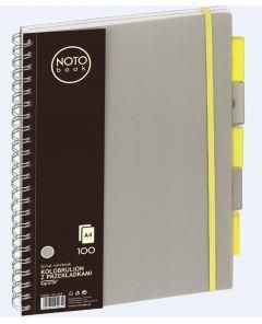 Kołobrulion Grand NotoBook. Wygodny w użytkowaniu kołobrulion z polipropylenową oprawą na spirali. Umożliwia komfortowe pisanie bez konieczności ciągłego zaginania kartek. Niezawodny produkt do wygodnego notowania zarówno w pracy, szkole czy na uczelni. Model: 150-1408 Kolor okładki: szary Format: A4 Ilość kartek: 100 Liniatura: kratka Grzbiet: podwójna spirala metalowa Gramatura papieru: 80 g/m2 Okładka z polipropylenu jest wytrzymała i wodoodporna Zamykanie na gumkę ułatwia przenoszenie notatnika Wewnątrz 5 przekładek wspomagających organizację