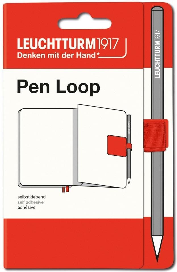 Pen loop uchwyt na długopis Pen Loop to elastyczny uchwyt na przyrządy piśmiennicze, idealny dodatek do notatników marki Leuchtturm1917. Pen Loop pasuje do każdego rodzaju narzędzia piśmienniczego, niezależnie od jego grubości i długości - może to być kredka, cienkopis, długopis, pióro, ołówek - co tylko wybierzesz. Uchwyt jest samoprzylepny, do zamontowania wewnątrz okładki notatnika. Dostępna jest cała gama kolorystyczna dopasowana do notatników Leuchtturm1917. samoprzylepny uchwyt z tłoczonym logo Leuchtturm1917, pętelka o długości 15 mm z trwałego elastycznego materiału, Wymiary: 40 x 40 mm Kod producenta: 369821