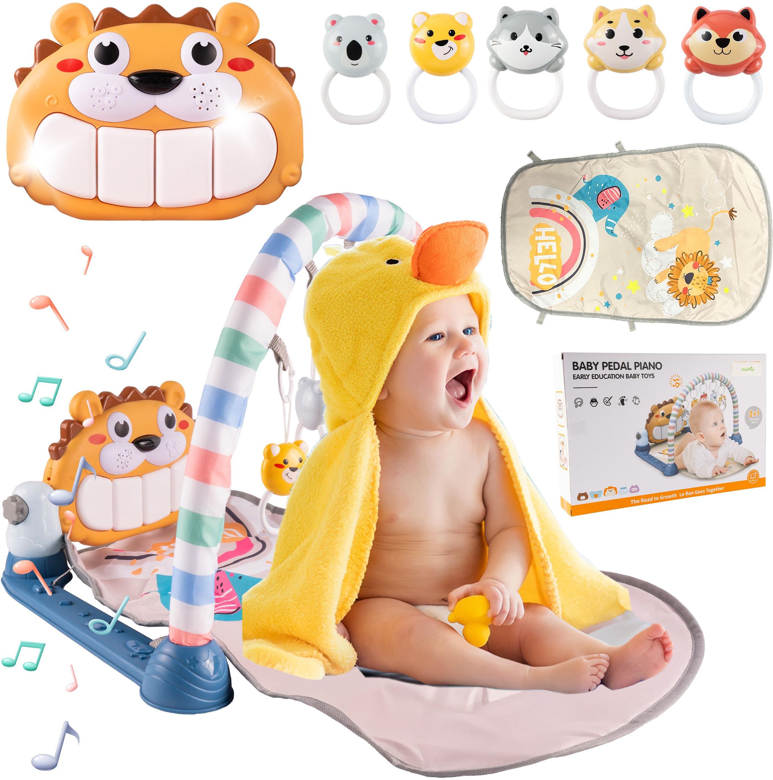 Mata Edukacyjna Lew z Pianinkiem Interaktywna Lusterko Pianinko Grzechotki Opalenica