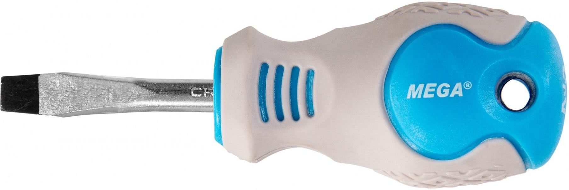 Wkrętak płaski marki Mega o długości: 38 mm. Typ: 6.0. Groty wykonane ze stali chromowo-wanadowej, hartowane. Antypoślizgowe rękojeści dwukomponentowe SOFT TOUCH. Magnetyczna końcówka.