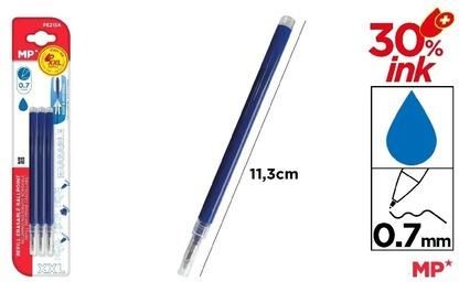 Wkład do wymazywalnego długopisu. Tusz niebieski, łatwy do korekty. 30% więcej tuszu. Końcówka 0,7 mm. Blister 3 szt Opakowanie: blister