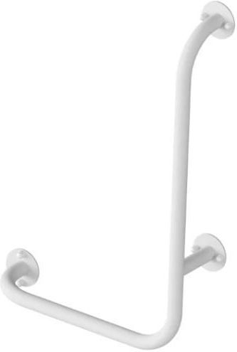 Uchwyt prysznicowy lewy dla niepełnosprawnych materiał: stal węglowa, malowana proszkowo kolor: biały grubość powłoki: 120 µ długość poręczy: 400x600 mm odległość od ściany: 90 mm średnica rury: Ø 25 mm grubość ścianki: 1,5 mm kąt gięcia rury 90° elementy łączenia spawane pozycja montażu: lewa …