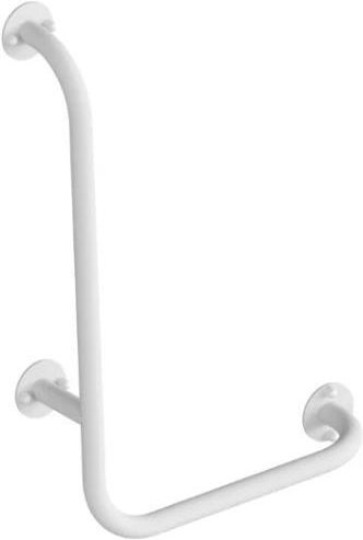 Uchwyt prysznicowy prawy dla niepełnosprawnych materiał: stal węglowa, malowana proszkowo kolor: biały grubość powłoki: 120 µ długość poręczy: 400x600 mm odległość od ściany: 90 mm średnica rury: Ø 25 mm grubość ścianki: 1,5 mm kąt gięcia rury 90° elementy łączenia spawane pozycja montażu: prawa …