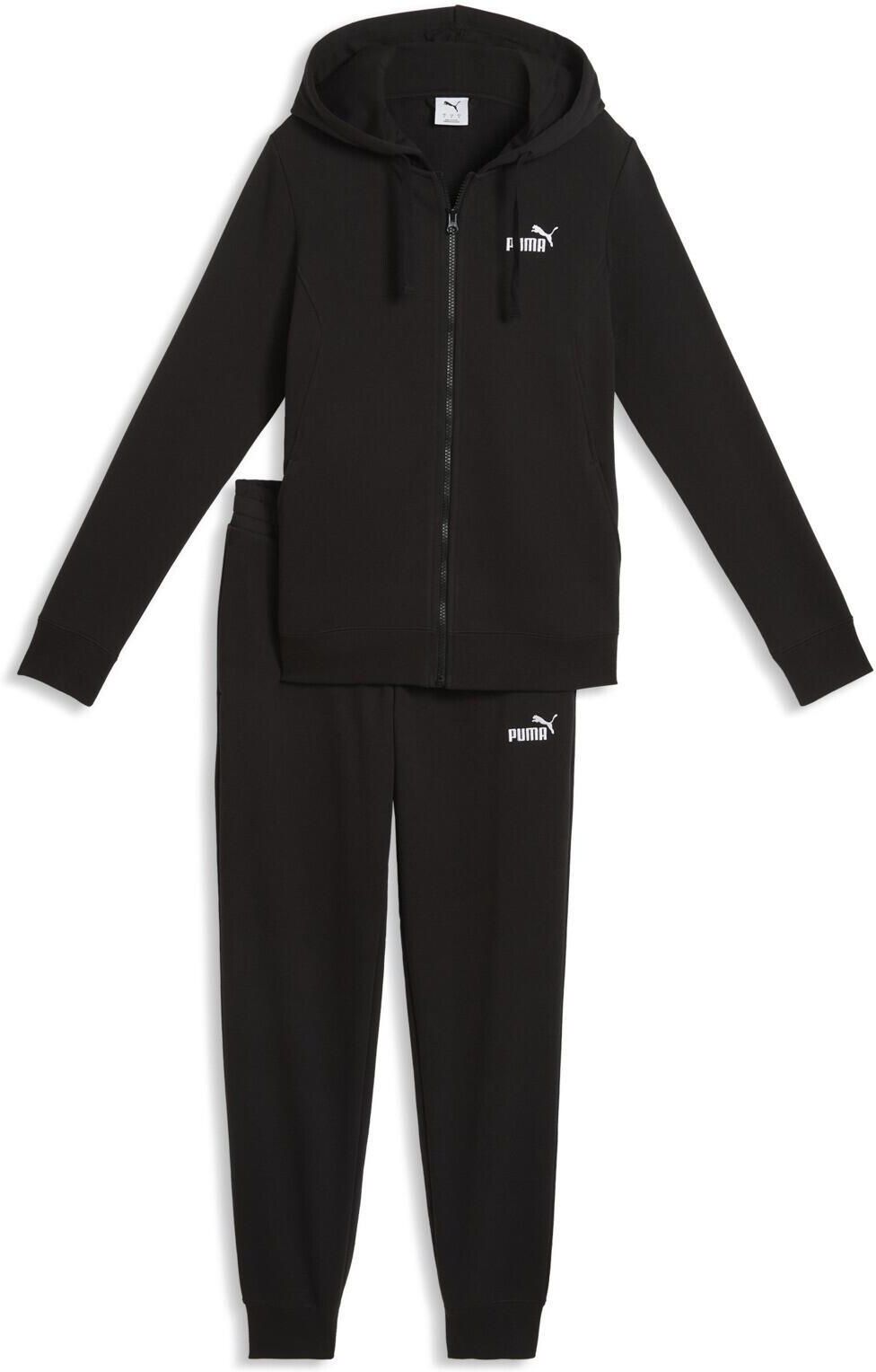 Dres damski Puma Hodded Sweat Suit czarny 691902 01 Dres damski Puma został stworzony z myślą o komforcie i swobodzie ruchów na co dzień. Standardowy krój. Ściągacze przy mankietach i dole bluzy. Materiał łączy naturalną bawełnę z wytrzymałymi włóknami poliestrowymi. Rozpinana bluza. Kaptur z regulacją sznurkiem. Spodnie posiadają elastyczną talię z regulacją sznurkiem. Zarówno bluza, jak i spodnie posiadają kieszenie. Materiał główny: 68% Bawełna, 32% PoliesterŚciągacze: 97% Bawełna, 3% Elastan