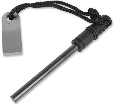 Krzesiwo Schrade Large Ferro Rod with Striker Plate - SCHFS1 Krzesiwo z iskrownikiem SCHFS1 wyprodukowane przez firmę Schrade. Cechy: - niska waga - zajmuje nie wiele miejsca w ekwipunku - działa nawet po zamoknięciu - wygodny, antypoślizgowy uchwyt z tworzywa sztucznego - gruba, trwała blaszka - w komplecie linka - długość całkowita: 101,5 mm - długość pręta: 63 mm - wymiary blaszki: 42 x 15 3,8 mm - waga: 35 g