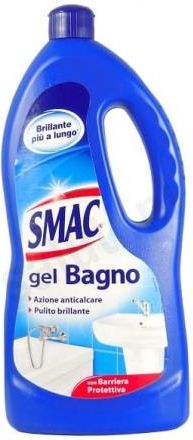 SMAC gel Bagno (poj. 850 ml) Płyn do czyszczenia Smac czyści głęboko i skutecznie. Usuwa kamień, plamy z wody i mydła. Pozostawia przy tym barierę ochronną, co opóźnia powstawanie kamienia i utrzymuje czystość przez długi czas Wyprodukowano w Unii Europejskiej.