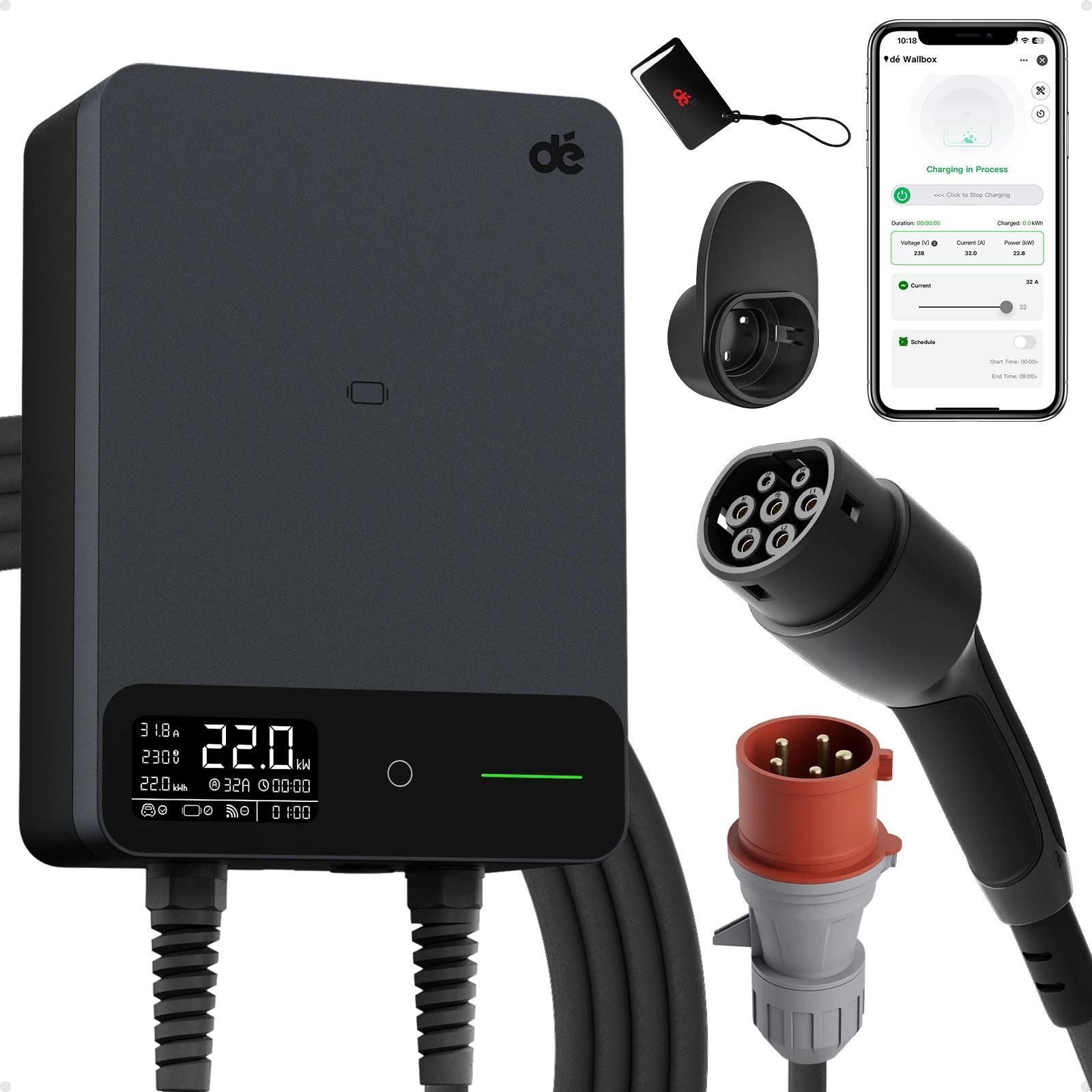DE Wallbox 22kW – Inteligentna ładowarka 3-fazowa z aplikacją i regulacją mocy Nowoczesna stacja ładowania do każdego garażu i firmy DE Wallbox 22kW to zaawansowana technologicznie ładowarka samochodów elektrycznych, zaprojektowana z myślą o użytkownikach ceniących szybkość, wygodę i kontrolę. Dzięki mocy ładowania do 22 kW oraz trójfazowemu zasilaniu, urządzenie doskonale sprawdzi się zarówno w domowym garażu, jak i w małej firmie czy flocie pojazdów. Inteligentne funkcje i pełna kontrola przez aplikację Wbudowany wyświetlacz LED oraz aplikacja mobilna tuya pozwalają na precyzyjne sterowanie mocą ładowania (od 6 A do 32 A), harmonogramem oraz podgląd zużycia energii w czasie rzeczywistym. DE Wallbox oferuje także funkcję blokady RFID i licznik zużycia energii, co czyni go idealnym wyborem do miejsc, gdzie z ładowarki korzysta więcej niż jedna osoba. Najważniejsze cechy Moc do 22 kW (3-fazowa, 32A) – szybkie i efektywne ładowanie nawet dużych baterii EV Obsługa przez aplikację mobilną – pełna kontrola z poziomu smartfona (Android/iOS) Sterowanie mocą ładowania – regulacja od 6 A do 32 A dla lepszego zarządzania zużyciem Wyświetlacz LCD – podgląd parametrów ładowania na bieżąco Zabezpieczenia i RFID – kontrola dostępu, funkcja blokady i monitorowanie sesji Kabel z wtyczką Typ 2 – europejski standard kompatybilny z większością pojazdów Obudowa IP55 – odporność na warunki zewnętrzne i pył W zestawie znajdziesz oprócz ładowarki także zestaw montażowy, wieszak kabla zintegrowany z uchwytem wtyczki i 3 karty RFID. Urządzenie może być instalowane zarówno wewnątrz, jak i na zewnątrz budynków. Ładowarka obsługuje instalacje 400V i spełnia europejskie normy bezpieczeństwa. Idealna dla właścicieli EV szukających szybkiej, niezawodnej i wszechstronnej ładowarki.