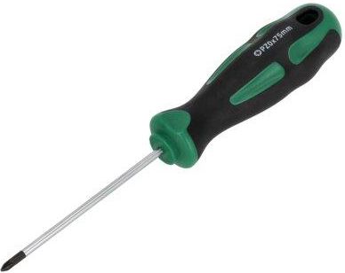 Wkrętak Pozidriv PZ0 o długości trzpienia 75 mm, to ręczne narzędzie o końcówce krzyżakowej z czterema dodatkowymi wypustkami. Takie końcówki są stosowane we wkrętach stolarskich, które wymagają większej siły nacisku w czasie montażu. Narzędzie przyda się zatem głównie przy pracach budowlanych, konstrukcyjnych, a także drobnych naprawach. Wkrętak Pozidriv od STALCO został wykonany z dobrej jakości stali narzędziowej chromowo-wanadowej. Ten gatunek zapewnia odporność na ścieranie i pękanie, a także chroni narzędzie przed powstawaniem korozji. Wkrętak jest wyposażony w ergonomiczny uchwyt z tworzywa sztucznego, który pozwala pewnie pochwycić narzędzie w dłoni.