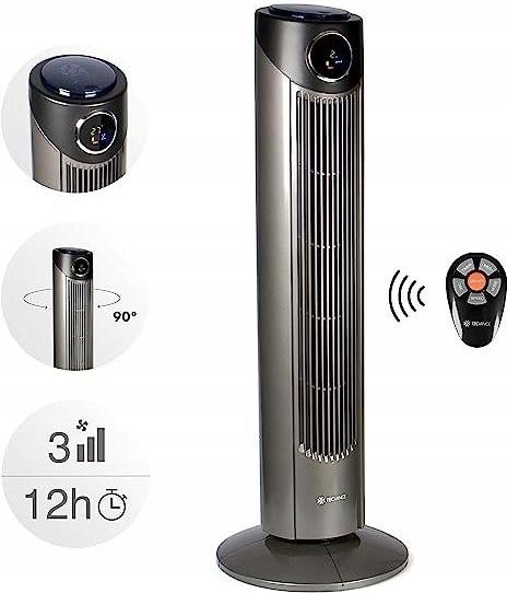 Wentylator wieżowy z pilotem, cichy wentylator kolumnowy, oscylacja 80° Producent:Tecvance Numer artykułu:TV-3155 Wymiary produktu :87 x 18 x 22 cm; 4,3 kilograma Model: B07D3RS2SF Dzięki mocnej dmuchawie (45 W) wentylator wieżowy Tecvance zapewnia optymalną wymianę powietrza i efekt chłodzenia nawet w najgorętsze dni. Dzięki wąskiej i ponadczasowej konstrukcji wieży, wentylator może być stosowany wszędzie tam, gdzie jest mało miejsca. Dzięki trzem poziomom prędkości (niski / średni / silny) i trzem różnym trybom wiatru (naturalny / uśpiony / normalny) możesz idealnie dostosować wydajność wentylatora wieżowego do swoich potrzeb.Zawiera pilota na podczerwień i 3 poziomy prędkości MOCNY WENTYLATOR: Wentylator wieżowy TECVANCE PLUS to właściwy wybór na upalne dni, gdy chcesz przyjemnego ochłodzenia. Wentylator podłogowy posiada 3-stopniową funkcję chłodzenia. ŁATWY W UŻYCIU: Możesz sterować wentylatorem stojącym na górze urządzenia lub użyć pilota do regulacji chłodnicy powietrza. Zapewnij chłodne powietrze za naciśnięciem jednego przycisku! BARDZO CICHY: Pomimo dużej mocy (45 watów) ten wentylator pokojowy jest dość cichy. Cichy wentylator jest szczególnie ważny w sypialni. Ale możesz go również użyć w dowolnym innym pomieszczeniu. WIELE DODATKÓW: Wentylator pokojowy oscyluje (obraca się). Chłodny wiatr wieje przez całe pomieszczenie. Możesz także korzystać z elektronicznego wyświetlacza temperatury i timera (do 12 godzin). DANE FIZYCZNE: Wysokość wentylatora: ok. 86 cm, średnica podstawy: ok. 31 cm, waga: ok. 4,3 kg, wejście: 220 - 240 V (50/60 Hz), długość kabla: ok. 1,5 m Produkt pochodzący z nadwyżek magazynowych.