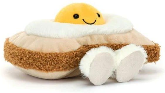 Jajko Sadzone na Toście marki Jellycat London to radosne śniadanie pełne przytulania! Puszyste jajko sadzone z uśmiechniętym żółtkiem spoczywa na idealnie opieczonym toście z delikatnie chrupiącą skórką. Z rączkami z cienkiego sznurka i białymi, puszystymi kapciami, Jajko Sadzone na Toście stanie …