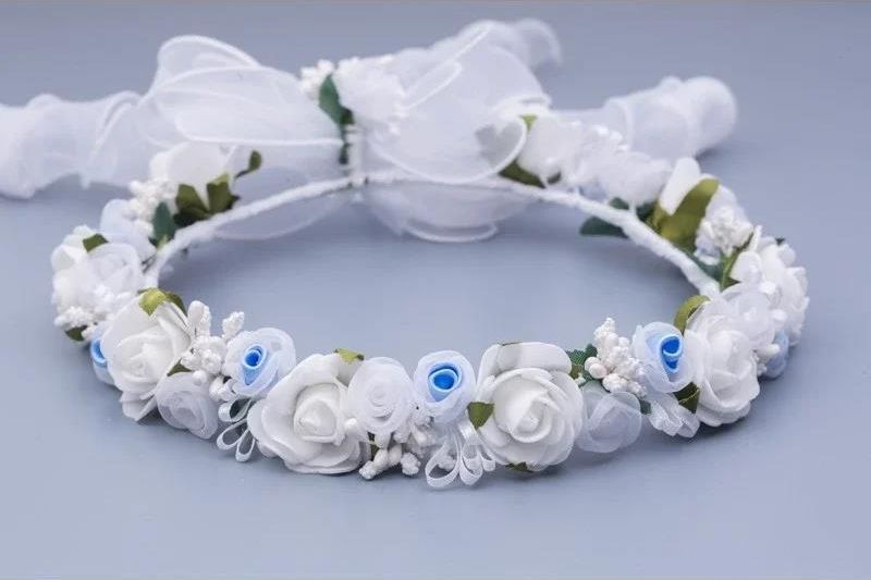 Wianek Komunijny W-102 Dla Dziewczynki Z Białymi I Niebieskimi Kwiatami Opalenica