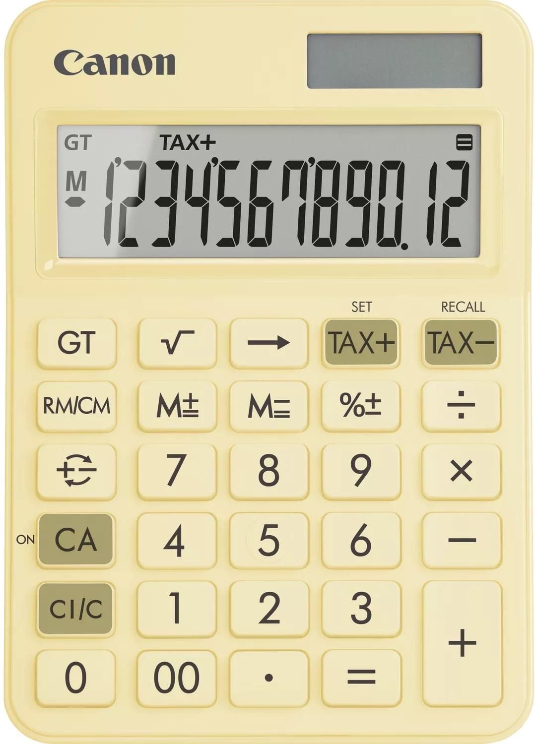 KALKULATORY SERII K CANON  LS-125KB  Ten wykonany z ekologicznych materiałów kalkulator biurkowy uatrakcyjnia miejsce pracy i zmniejsza ślad węglowy użytkownika .   Atrakcyjny element domu lub biura Model LS-125KB zapewnia podstawowe funkcje w uniwersalnej, dostępnej w atrakcyjnych kolorach i z metalicznymi wykończeniami obudowie, która uatrakcyjnia wystrój domu lub biura. Ten ekologiczny kalkulator biurkowy wykonano z materiałów pochodzących z recyklingu i materiałów z biomasy – bez uszczerbku dla jego trwałości .   Kalkulator Canon LS-125KB – pomarańczowy Użyto mniej plastiku, wykorzystano materiały na bazie roślin Podwójne zasilanie zapewnia stałą energię Duży, 12-cyfrowy wyświetlacz z funkcją obliczania podatku Kalkulator Canon LS-125KB – żółty Użyto mniej plastiku, wykorzystano materiały na bazie roślin Podwójne zasilanie zapewnia stałą energię Duży, 12-cyfrowy wyświetlacz z funkcją obliczania podatku Kalkulator Canon LS-125KB – niebieski Użyto mniej plastiku, wykorzystano materiały na bazie roślin Podwójne zasilanie zapewnia stałą energię Duży, 12-cyfrowy wyświetlacz z funkcją obliczania podatku Kalkulator Canon LS-125KB – zielony Użyto mniej plastiku, wykorzystano materiały na bazie roślin Podwójne zasilanie zapewnia stałą energię Duży, 12-cyfrowy wyświetlacz z funkcją obliczania podatku     Ekologiczne rozwiązanie Model LS-125KB jest wykonany z tworzyw sztucznych pochodzących z recyklingu i z NuPlastiQ, czyli innowacyjnego biopolimeru pochodzącego z odnawialnych źródeł Podwójne zasilanie Dwa tryby zasilania – bateryjne i słoneczne – wydłużają czas pracy kalkulatora Wszechstronny zakres funkcji Duży, 12-cyfrowy wyświetlacz i klawisz obliczania podatku ułatwiają obsługę złożonych liczb oraz umożliwiają dodawanie i odejmowanie określonej stawki podatku od sprzedaży Dopasowany do upodobań użytkownika Dobierz kolor do wystroju domu lub biura: żółty, zielony, niebieski lub pomarańczowy Wygodna praca Model LS-125KB obsługuje funkcję pamięci sumy całkowitej. Ma smukłą obudowę, płaski wyświetlacz i klawisze umożliwiające prostą obsługę na biurku   Dane techniczne Materiały z recyclingu Wykonany z pochodzącego z recyklingu plastiku oraz materiału NuPlastiQ na bazie biomasy Duży wyświetlacz 12-cyfrowy wyświetlacz Podwójne zasilanie Energia słoneczna i bateria Obliczanie podatków Proste dodawanie i odejmowanie ustalonej stawki podatku od sprzedaży Funkcja sumy całkowitej Śledzenie wielu obliczeń Płaskie przyciski i wyświetlacz Dobra widoczność na biurku     Zawartość opakowania Canon LS-125KB