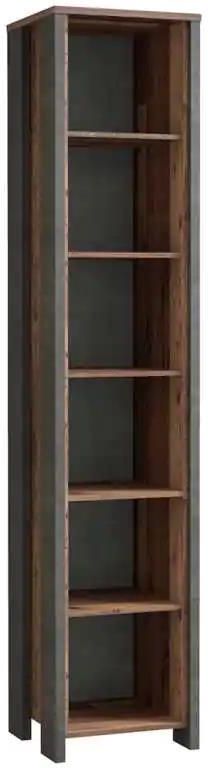 Regał z półkami CLIF stanowi uniwersalne wyposażenie wnętrza do różnych pomieszczeń - od salonu, poprzez sypialnię, aż po domowy gabinet. W jego wnękach można przechowywać wygodnie zarówno książki, jak i dekoracje czy osobiste pamiątki. Prosta bryła regału pozwoli uniknąć efektu przytłoczenia aranżacji, a jego niebanalna kolorystyka odświeży wystrój i nada mu charakter. Jakie atuty posiada regał półkowy CLIF? Nowoczesny regał otwarty wysoki z kolekcji mebli Forte CLIF został wykonany z dobrej jakości płyty, wzmocnionej obrzeżami ABS. Mebel jest więc łatwy do utrzymania w czystości, niewymagający w pielęgnacji i odporny na różne uszkodzenia mechaniczne. Regał oferuje użytkownikowi rząd półek, na których można ustawić rozmaite przedmioty o dekoracyjnym charakterze. Sam mebel zajmuje natomiast niewiele miejsca, dzięki czemu zmieści się nawet w mniejszej sypialni czy gabinecie. Jak prezentuje się regał otwarty CLIF? Ciemny, wąski regał na książki i dekoracje CLIF wybarwiono na dwa efektowne kolory: Old Wood Vintage oraz Beton Ciemnoszary. Połączenie tych barw sprawia, że ten prosty mebel doskonale wpisuje się w charakter aranżacji loftowej i industrialnej, ale może odświeżać także wystrój wnętrza nowoczesnego i minimalistycznego. Regał wprowadza do pomieszczenia ciepły i elegancki rysunek drewna, przełamany surowością i chłodem betonu. Dzięki temu przyciąga wzrok i pozwala urozmaicić wygląd stonowanego wystroju wnętrza. Wymiary regału Szerokość: 47 cm Głębokość: 41,6 cm Wysokość: 220,7 cm