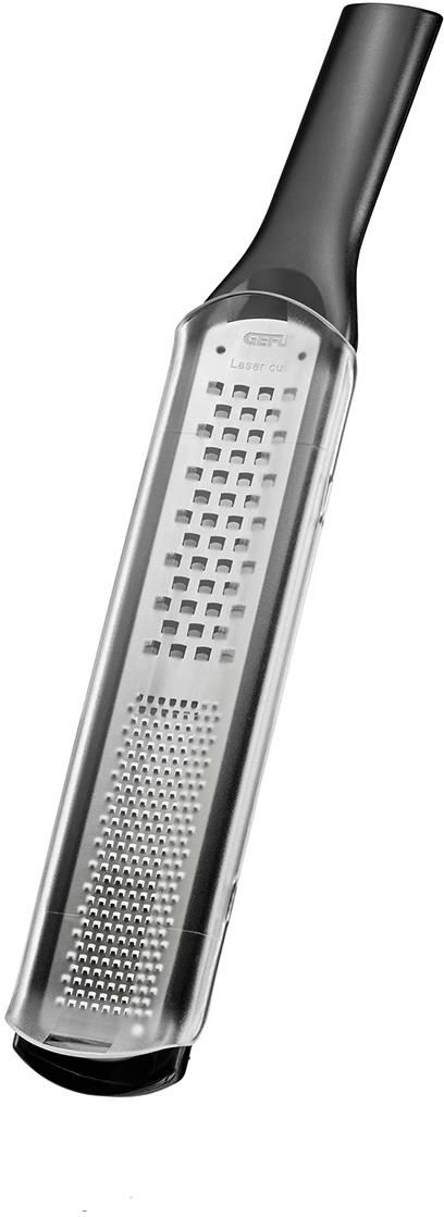tarka długa podwójna gefu rafino do krojenia warzyw i serów to wielofunkcyjne narzędzie kuchenne, które ułatwia szybkie i precyzyjne przygotowanie różnorodnych składników. Dzięki dwóm powierzchniom ścierania, z łatwością zetrzesz twarde produkty takie jak parmezan, imbir, czy czekoladę na delikatne płatki lub drobne wiórki. Ergonomiczny uchwyt oraz antypoślizgowa podstawa gwarantują wygodę i bezpieczeństwo użytkowania, co czyni tę tarkę niezastąpioną w codziennym gotowaniu. Zawartość zestawu W zestawie znajduje się: tarka długa podwójna GEFU Rafino z dwiema powierzchniami ścierania (drobne i grube oczka) przezroczysta osłona ochronna Charakterystyki produktu Wymiary: długość 36,5 cm, szerokość 8 cm, wysokość 4,5 cm Masa: 0,11 kg Materiał: wysokiej jakości stal nierdzewna oraz tworzywo sztuczne Powierzchnia ścierania: dwie strony – drobne i grube oczka Dodatki: antypoślizgowa podstawa, przezroczysta osłona, pętla do zawieszania Czyszczenie: można myć w zmywarce Gwarancja: 5 lat (Q5-label) Przyjemności produktu wielofunkcyjna tarka do różnych produktów spożywczych dwustronne ścieranie: drobne i grube ergonomiczny, wygodny uchwyt antypoślizgowa podstawa zapewniająca stabilność wklęsła, długa powierzchnia dla szybkiego i efektywnego ścierania bardzo ostre, wycinane laserowo ostrza dla precyzyjnego krojenia przezroczysta osłona zabezpieczająca ostrza możliwość zwieszenia na haczyku dzięki pętli wykonana z trwałych i łatwych w utrzymaniu materiałów łatwa w czyszczeniu, nadaje się do zmywarki lekka i poręczna konstrukcja odporna na korozję dzięki stali nierdzewnej bezpieczna w użytkowaniu dzięki antypoślizgowym elementom długa gwarancja producenta Rozszerzony opis Tarka długa podwójna gefu rafino do krojenia warzyw i serów wyróżnia się nowoczesnym designem i przemyślaną konstrukcją, która pozwala na szybkie oraz wygodne ścieranie różnych składników. Wklęsła powierzchnia ułatwia prowadzenie produktu, co znacznie przyspiesza proces przygotowywania posiłków. Laserowo wycinane ostrza zapewniają długą żywotność i wyjątkową ostrość, dzięki czemu cięcie jest precyzyjne i równomierne. Antypoślizgowa podstawa zapobiega przesuwaniu się tarki podczas pracy, a ergonomiczny uchwyt gwarantuje pewny chwyt nawet podczas intensywnego użytkowania. Użytkownik doceni również łatwość czyszczenia – wszystkie elementy tarki można bezpiecznie myć w zmywarce. Produkt jest objęty 5-letnią gwarancją jakości, co potwierdza jego niezawodność i trwałość w codziennym użytkowaniu. Dodatkowe informacje Producent: GEFU Seria: Rafino Kraj pochodzenia: Niemcy Czyszczenie: można myć w zmywarce Opakowanie: estetyczne, zabezpieczające produkt Design: nowoczesny, funkcjonalny Certyfikaty: produkt objęty 5-letnią gwarancją jakości pod znakiem "Q5-label"