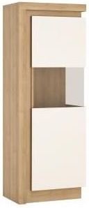 Witryna w kolorze Dąb Riviera Jasny (korpus) oraz Biały Połysk (Front, prawy bok witryny) Nowoczesna, częściowo przeszklona witryna, której wnętrze skrywa 4 półki Asymetryczne oświetlenie. które jest w zestawie nada bryle wyjątkowego uroku Możliwość dokupienia dodatkowego włącznika (uruchamia …