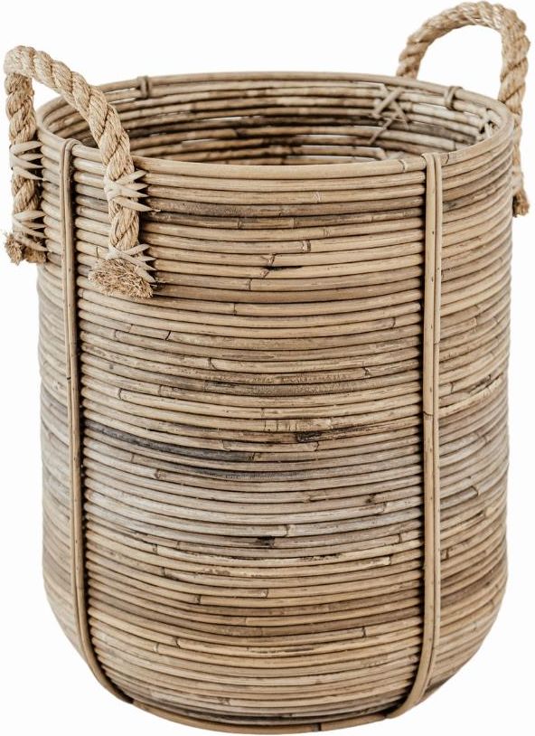 Modne i niepowtarzalne wnętrza – to przede wszystkim dodatki!!! Nietuzinkowe i oryginalne dodatki i dekoracje mogą całkowicie odmienić upatrzone i nudne wnętrza. Najnowsze trendy meblarskie zdominowane są naturą i nawiązują do ekologii i dbania o środowisko dlatego nadchodzący sezon będzie mocno inspirowany meblami i dekoracjami naturalnego pochodzenia, a naturalny rattan jest pełen ciepłych kolorów ziemi i idealnie wpisuje się w ten trend. Rattan jest surowcem, który pozyskuje się z winorośli palmowej występującej w strefie tropikalnej z Azji. Rattan początkowo wykorzystywano do produkcji mebli ogrodowych, natomiast obecnie coraz częściej spotykamy w trendach uplecione z niego dodatki jak ten nietuzinkowy wazon. Rattanowe dekoracje szczególnie dobrze prezentują się we wnętrzach w stylach skandynawskim, boho, rustykalnym czy ekologicznym. Ten naturalny materiał ma neutralny urok, współgrający z aranżacjami w których dominują jasne i delikatne barwy. Rattan z którego zrobione są Kosze Azure, rośnie w zaskakująco szybkim tempie na drzewach by wspiąć się jak najszybciej do światła słonecznego. Szybkość z jaką rośnie rattan pozwala że można go ścinać znacznie częściej niż drzewa które potrzebują na to dekad. Zmniejsza to nasz wpływ na naturalny ekosystem i wycinkę drzew i dlatego jest alternatywą dla miłośników EKO. Kosze dostępne w trzech rozmiarach: Rozmiar S Wysokość całkowita z uchwytem: 49cm Wysokość kosza: 40cm Średnica: 30cm Waga: około 2kg Rozmiar M Wysokość całkowita z uchwytem: 53cm Wysokość kosza: 45cm Średnica: 37cm Waga: około 2,5kg Rozmiar L Wysokość całkowita z uchwytem: 60cm Wysokość kosza: 51cm Średnica: 44cm Waga: około 3kg Można również zakupić wszystkie trzy kosze w trzech rozmiarach jako zestaw. W niektórych przypadkach obrazy i kolory mają jedynie charakter orientacyjny. Wszystko, co jest widoczne na ekranie, może zostać zniekształcone przez wiele czynników, w tym kalibrację ekranu, oświetlenie otoczenia lub kąt widzenia. Dodatkowo, meble i dekoracje Monnarita wykonana są ręcznie z naturalnego tworzywa, w związku z czym mogą się od siebie różnić kolorystyką, wykonaniem oraz nieznaczną różnicą w wymiarach.Wymiary mogą się różnić 1-3cm.