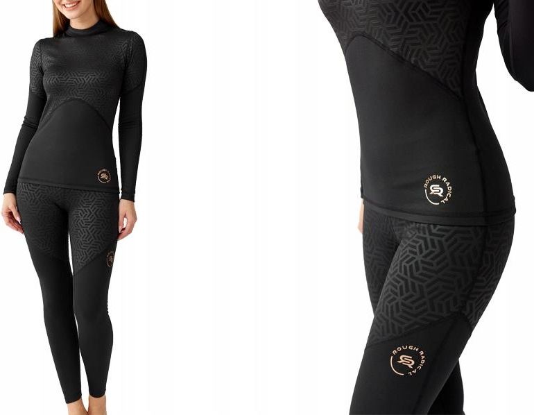Komplet (koszulka i spodnie) szybkoschnącej damskiej bielizny termoaktywnej, wykonanej z najwyższej jakości komfortowej tkaniny, pomagającej utrzymać stałą temperaturę ciała. Posiada dodatkową ochronę antybakteryjną. IMPRESSION to ciepła, szybkoschnąca i oddychająca damska bielizna termoaktywna. Świetnie sprawdzi się jako pierwsza warstwa odzieży na co dzień oraz podczas aktywności fizycznej, nawet o wysokiej intensywności, szczególnie w chłodne i zimne dni. Bielizna przeznaczona jest w szczególności do wysokiej aktywności fizycznej, turystyka, bieganie, narty, snowboard, rower. Jej wewnętrzna strona podszyta jest miękkim mikro polarem, zapewniającym ciepło i duży komfort użytkowania. Prezentowany model został wykonany w technologii Sanitized Silver Ions, która zapewnia maksymalną ochronę antybakteryjną, dzięki zastosowaniu jonów srebra. Użyta przy produkcji bielizny formuła Moisture Management, jest przyjemna dla skóry i doskonale odprowadza wilgoć. Dzięki temu dzianina schnie szybciej, pozostaje miękka i przewiewna a jej właściwości utrzymują się nawet po wielu praniach. Dodatkowo „oddychający” materiał reguluje temperaturę ciała, zapewniając chłód w razie przegrzania i ciepło w razie wychłodzenia. Główne zalety naszej bielizny termoaktywnej Dopasowująca się do kształtu ciała struktura dzianiny, idealna dla ubioru warstwowego. Materiał przyjemny w dotyku i komfortowy w użytkowaniu Wysoka elastyczność tkaniny i krycie Ochrona antybakteryjna zapewnia przyjemne uczucie świeżości. Szybkie odprowadzanie potu, wilgoci, sucha skóra Oddychający materiał reguluje temperaturę ciała Przeznaczona dla sportowców oraz użytku codziennego Modelka ma na sobie rozmiar S/170 cm. Prać najlepiej ręcznie w temperaturze 30 stopni. Specyfikacja produktu: Producent: RADICAL POLSKA Marka: ROUGH RADICAL Model: IMPRESSION Stan: fabrycznie nowy z metkami i w opakowaniu Krajpochodzenia/produkcji: Polska Skład materiałowy: 92% poliester, 8% elastan Kolor: czarny Zastosowane technologie: Clariant Moisture Management, Jony Srebra Sanitized Produkty marki Rough Radical szyte są w Polsce za pomocą nowoczesnej technologii Autolap, czyli płaskiego, mocnego i bezuciskowego szwu, który nie powoduje podrażnień. Rozmiar S: Wzrost: 158-168 cm Obwód klatki piersiowej: 82-92 cm Obwód pasa: 66-80 cm Obwód bioder: 88-96 cm Rozmiar M: Wzrost: 162-172 cm Obwód klatki piersiowej: 88-98 cm Obwód pasa: 70-88 cm Obwód bioder: 94-102 cm Rozmiar L: Wzrost: 166-176 cm Obwód klatki piersiowej: 94-104 cm Obwód pasa: 74-96 cm Obwód bioder: 100-108 cm Rozmiar XL: Wzrost: 170-180 cm Obwód klatki piersiowej: 100-110 cm Obwód pasa: 78-104 cm Obwód bioder: 106-114 cm