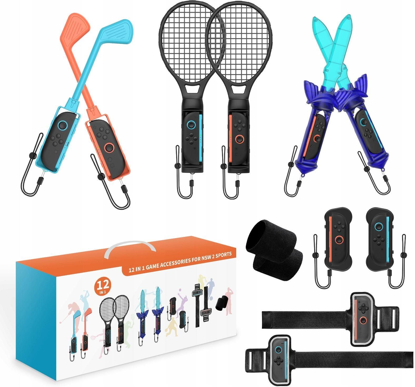 Zestaw Akcesoriów 12w1 Dedykowany do kontrolerów Joy-Con od konsoli Nintendo Switch 2 / NSW 2 Zestaw przeznaczony do gier takich jak: Mario Golf: Super Rush Mario Tennis Aces Nintendo Switch Sports The Legend of Zelda: Skyward Sword HD Ring Fit Adventure Just Dance (różne edycje) Grając z …
