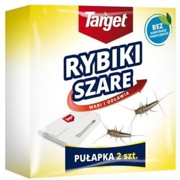 PUŁAPKA NA RYBIKI (SREBRZYKI) 2 SZT. PUŁAPKA - LEP DO MONITOROWANIA RYBIKÓW SZARYCH I INNYCH OWADÓW BIEGAJĄCYCH WE WSZYSTKICH POMIESZCZENIACH Bezzapachowy preparat, pułapka klejowa służąca do monitorowania obecności rybików szarych i innych owadów biegających we wszelkich pomieszczeniach. Produkt bezpieczny dla środowiska. Podłoże pułapki pokryte jest klejem specjalnie przeznaczonym do odławiania owadów. Skutecznie wabi i odławia szkodniki. Aby skutecznie pozbyć się rybików szarych, produkt należy stosować w sposób ciągły. Pułapkę należy wymienić po 3 miesiącach od jej wyłożenia lub po zapełnieniu się powierzchni klejącej owadami. Rybiki żywią się materią organiczną, w mieszkaniach najczęściej występują w miejscach wilgotnych i ciemnych. Pułapka - lep do monitotowania obecności owadów Target zwalcza: rybiki szare, srebrzyki. Sposób użycia pułapki na rybiki (srebrzyki): rozłożyć pułapkę i zdjąć listek zabezpieczający powierzchnię klejącą, wyjąć z saszetki atraktant wabiący i umieścić w zasobniku pułapki, uformować pułapkę do postaci ze schematu i umieścić w wybranym miejscu. Okres karencji Brak. Zalecenia stosowania pułapki na rybiki (srebrzyki): Produkt należy stosować w sposób ciągły. Pułapkę należy wymienić po 3 miesiącach od jej wyłożenia lub po zapełnieniu się powierzchni klejącej owadami. Postępowanie z produktem: Przechowywać w chłodnym i suchym miejscu. Przechowywać wyłącznie w oryginalnym, nieuszkodzonym opakowaniu. Opakowanie po otwarciu powinno być od razu użyte. Chronić przed działaniem promieni słonecznych i silnych źródeł zapłonu. Nie palić. Przechowywać poza zasięgiem dzieci i zwierząt domowych. Zapoznać się z treścią karty charakterystyk lub etykiety.