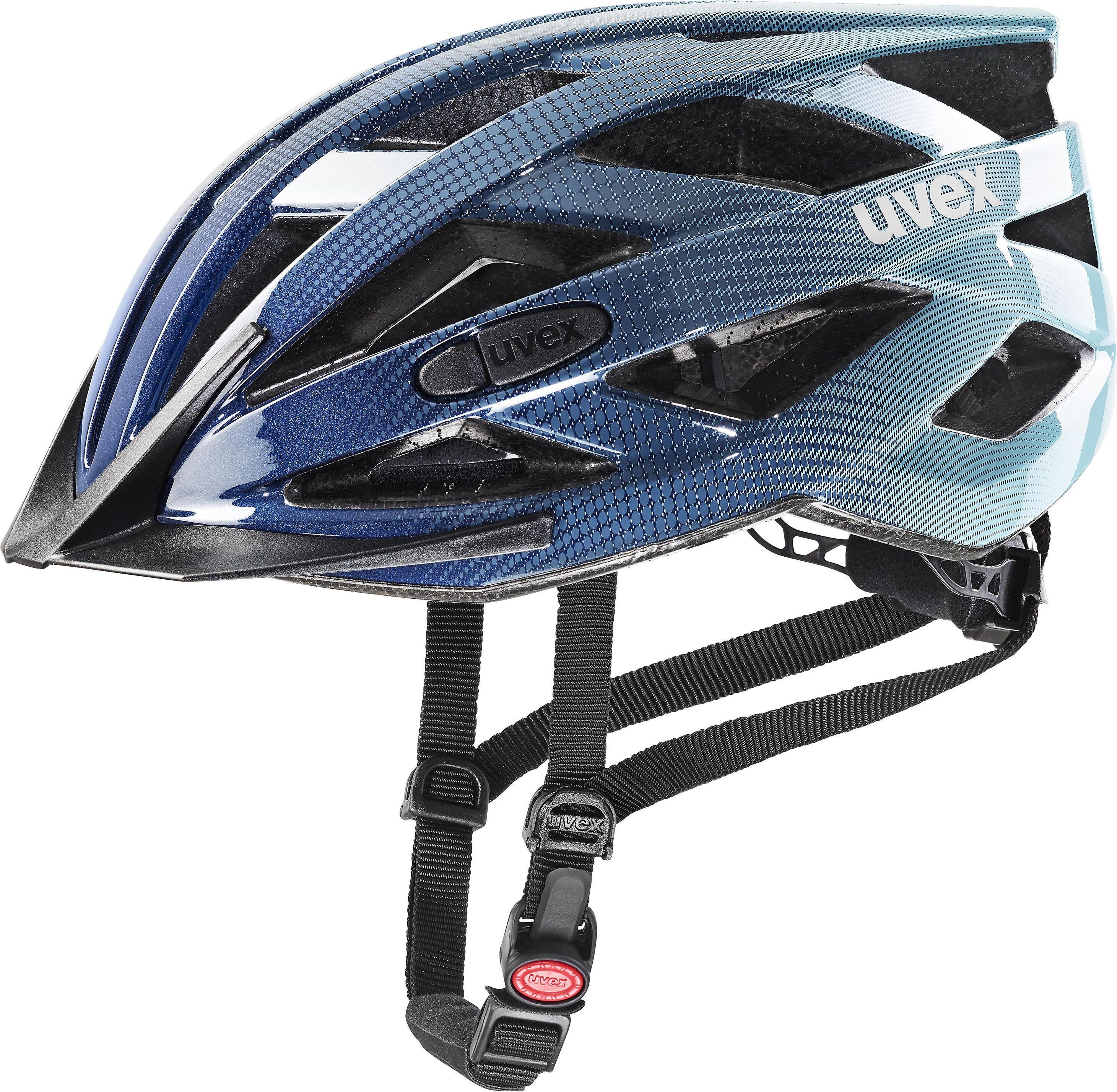 KASK ROWEROWY UVEX I-VO BLUE Uvex I-Vo to wszechstronny lekki kask rowerowy, który wykorzystamy do jazdy po mieście oraz w terenie. 24 kanały wentylacyjne zapewniają świetną cyrkulację powietrza. System IAS 3D pozwala na precyzyjne dopasowanie do każdego obwodu głowy, a pasek pod brodą Monomatic zapewnia wygodne zapięcie. Specyfikacje: Technologia Inmould, tworząca ekstremalnie bezpieczną i stabilną konstrukcje kasku, wraz z doskonałą wentylacją Spełniający normy: EN 1078 / TÜV GS / CE System IAS 3D, który pozwala na dopasowanie kasku do kształtu głowy za pomocą jednej ręki 24 kanały wentylacyjne Siatka chroniąca przed owadami Wyjmowana wyściółka typu basic System Monomatic - to zamek blokujący, który pozwala na wielostopniową regulację paska podbródka za pomocą jednej ręki System FAS, pozwalający na proste dopasowanie długości pasków do własnych potrzeb. Dzięki temu kask leży mocno na głowie, nie mając możliwości ześlizgnięcia się, nawet podczas gwałtownego uderzenia MONOMATIC SYSTEM Zamek monokrystaliczny uvex można otwierać i zamykać jedną ręką. FAS Fas adapting system pozwala na proste dopasowanie długości pasków do własnych potrzeb. Dzięki temu kask leży mocno na głowie, uniemożliwiając ześlizgnięcie się, nawet podczas gwałtownego uderzenia. INMOULD Ochronny materiał EPS spieniany jest bezpośrednio w powłoce z poliwęglanu. Tworzy lekki hełm o najwyższej odporności na uderzenia. Idealne połączenie zewnętrznej skorupy z poliwęglanu i wewnętrznej warstwy EPS. IAS 3D SYSTEM Głowy różnią się nie tylko obwodem; różnią się również wysokością. System Uvex IAS 3D oferuje możliwość dopasowania również na głębokość osadzenia kasku zgodnie z rozmiarem głowy.