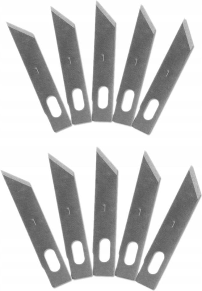 ZESTAW 10 OSTRZY #20 MODELARSKICH DO SKALPELA INFORMACJE O PRODUKCIE Ostrza #20 są idealne dla hobbystów, modelarzy, artystów, rzemieślników i każdej osoby, która potrzebuje precyzyjnego i skutecznego narzędzia do cięcia, dodatkowo ostrza są bardzo uniwersalne i znajdują zastosowanie w wielu różnych dziedzinach, gdzie wymagana jest precyzja i dokładność cięcia. Ostrza doskonale poradzą sobie z cięciem: Papieru i kartonu; Tkanin; Plastiku; Drewna Zastosowanie: rzeźbienie, wykonywanie ozdób tworzenie biżuterii. PASUJĄ DO WIĘKSZOŚCI OFEROWANYCH SKALPELÓW Parametry techniczne długość całkowita - 39,5mm grubość - 0,4mm szerokość całkowita ~ 11mm Szerokość uchwytu: ~ 8,8mm szerokość montażowa (dziurki) - 4mm ZESTAW 10 OSTRZY