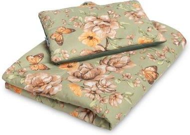Komplet do łóżeczka jest wykonany z jednej strony z wysokiej jakości kolorowej bawełny, a z drugiej przyjemnego w dotyku velvetu. Składa się z płaskiej poduszki oraz kołderki z antyalergicznym wypełnieniem. Milutka tkanina przyjemnie otuli każdego maluszka. Wymiary: Poduszka: 35x25 cm Kołderka: 95x75 cm Skład: Poszycie: 100% Bawełna100% Poliester/Polyester Otulina: 100% Poliester Sposób konserwacji: Prać ręcznie. Maksymalna temperatura prania to 30° C. Nie używać wybielacza. Prać w łagodnym detergencie lub w środku piorącym do kolorów. Nie czyścić chemicznie. Prasować tylko warstwę wewnętrzną w temp. max 110°C.