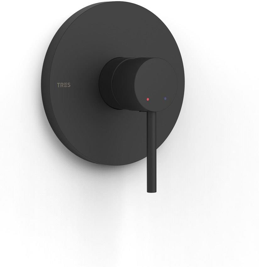 TRES STUDY EXCLUSIVE bateria natryskowa podtynkowa, czarny mat Gwarancja Producent udziela 5-letniej gwarancji na baterie oraz 2 lata na pozostałe elementy. Główne cechy: - kolor: czarny mat - rodzaj: natryskowa - typ: jednouchwytowa - montaż: podtynkowa - zawiera płytę dekoracyjną, uchwyt, tuleja i ukrytą śrubę mocującą - uzupełnienie do wpuszczanego korpusu Rapid-box Dane techniczne: - średnica rozety: 161 mm W zestawie brak elementu podtynkowego TRES RAPID BOX(20827810), który należy zakupić oddzielnie.