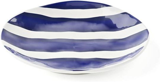 Talerz deserowy w paski W 2025 roku powstały dwie nowe kolekcje: Josephine, projekt Guzzini Lab, i Riviera, projekt Pio&Tito Toso, obie ozdobione przez RosannęGrigolon. Przed przyjrzeniem się każdej kolekcji szczegółowo, ważne jest podkreślenie, że Josephine i Riviera są oryginalne pod każdym względem: oprócz projektu i dekoracji, same artykuły — talerze, półmiski i miseczki do ciasta — zostały również zaprojektowane i wyprodukowane specjalnie na potrzeby tych kolekcji. Riviera to kolekcja zastawy stołowej o bardzo letnim nastroju: dwu Kolorowa w Kolorze niebieskim i białym z pociągnięciami pędzla, które przywodzą na myśl ręcznie robione piękno, wrażenie wzmocnione nieregularnym kształtem artykułów. Riviera przywodzi na myśl głębokie wody morza i jasne światło gorących, słonecznych dni, a także idealnie nadaje się do posiłków na świeżym powietrzu, przy basenie lub na łodzi. Kolekcja obejmuje talerze - obiadowe, do zupy i deseru - miski o średnicy 8, 12, 18, 22 i 30 cm z łyżkami do sałatek, wszechstronne owalne naczynie do risotto, które może również służyć jako miska na owoce lub element centralny, a na koniec cztery owalne naczynia do serwowania (XL, L, M i S). Wszystkie przedmioty mają różne zdobienia, od całkowicie niebieskiego po niebiesko-białe paski. Riviera jest zaprojektowana do użytku z innymi kolekcjami z katalogu, aby tworzyć inspirujące połączenia Kolorów, kształtów i Materiałów. Kreatywny, niezwykły sposób na zaprojektowanie stołu, uwalniający wyobraźnię z gwarantowanym „efektem wow”!Można myć w zmywarce Wymiary:Wysokość: 3 cmŚrednica: 21,5 cm
