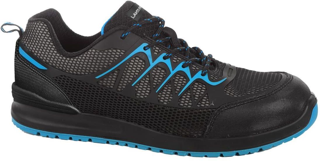 PÓŁBUTY KPU/DZIAN. CZAR.-NIEB., S1P SRC, "43", CE, LAHTI MATERIAŁ: Wierzch: KPU/dzianina siatkowa, zewnętrzna konstrukcja zwiększa cyrkulację powietrza wewnątrz obuwia. Podszewka: dzianina siatkowa. Wyściółka: wymienna. Podeszwa: poliuretan dwugęstościowy o właściwościach antypoślizgowych (podłoże stalowe i ceramiczne), odporna na olej napędowy, głęboki protektor zapewnia wysoką stabilność obuwia KAT. BEZPIECZEŃSTWA: S1P SRC Podnosek stalowy Stalowa wkładka antyprzebiciowa Właściwości antyelektrostatyczne Absorpcja energii w części piętowej Zabudowana pięta NORMA: ISO 20345:2011