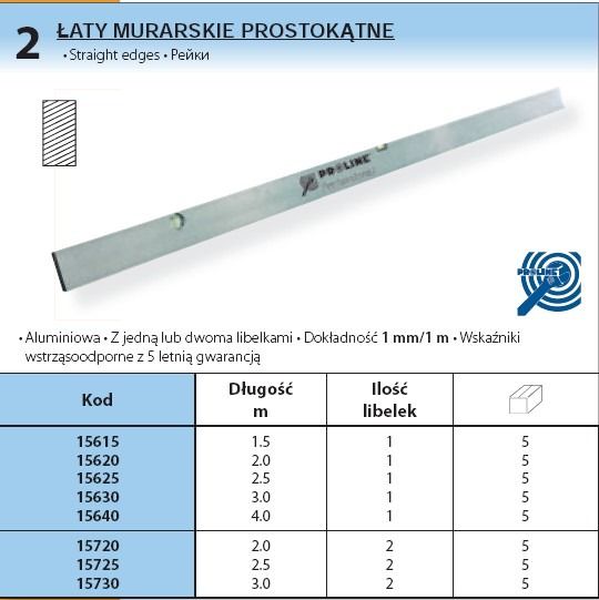 PROLINE łATA MURARSKA PROSTOKĄTNA DłUGOść 4 m 15640 Opoczno