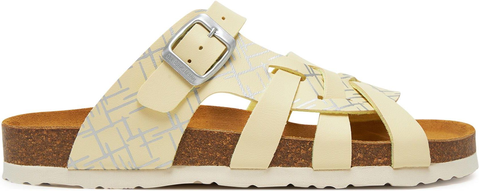 DR. BRINKMANN 700704-61 hellgelb, klapki damskie Kod produktu: 18360 Parametry Cechy specjalne: Wkładka typu FUSBET Zapięcie: Wsuwane, Sprzączka Kolor dominujący: Żółty Cholewka: Skóra ekologiczna Materiał podszewki: Materiał tekstylny Wkładka: Skóra naturalna Rodzaj podeszwy: Podeszwa płaska …