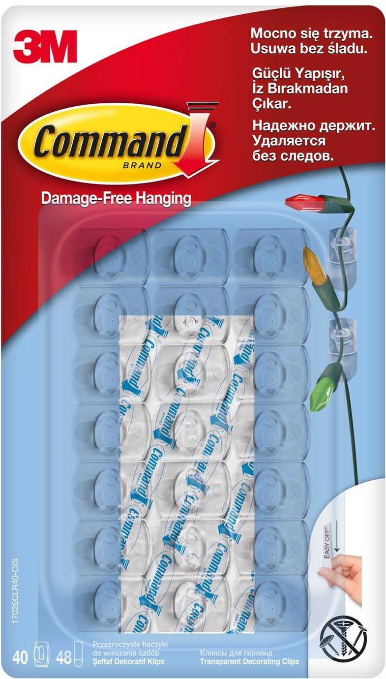 3M Command Przezroczyste Haczyki do wieszania ozdób, 40 haczyków, 48 mini pasków 17026CLR40 Opole