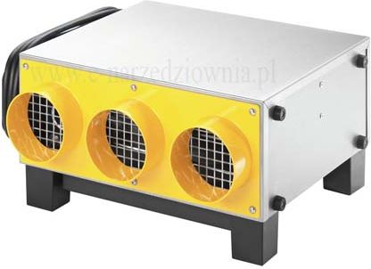 AERIAL AIRMAXX 2000 to profesjonalna dmuchawa przeznaczony do wspomagania pracy osuszaczy AERIAL. Niezwykle elastyczna, wysokowydajna dmuchawa może być używana wszędzie tam, gdzie powietrze wymaga cyrkulacji i zapewnia dodatkową wymianę powietrza podczas osuszania budynku, wentyluje kanały i wnęki. Urządzenie posiada klasę ochrony IP21, co oznacza, że jest chronione przed obcymi ciałami stałymi o średnicy 12,5 mm i większej oraz przed kroplami wody. Cechy produktu: Obudowa - stal nierdzewna i malowana proszkowo blacha (wylot powietrza). Filtr powietrza - wymienny filtr kasetowy klasy G4 Poziom hałasu 63 dB(A). Opcjonalnie - oddzielnie uruchamiany element grzewczy o mocy 2 300 W. Wydajny i energooszczędny wentylator promieniowy Przewód zasilający H07 o długości 4.5 m Wylot powietrza ze złączami do węża opcjonalnie: 3 x Ø 100 mm lub 6 x Ø 50 mm (1 wylot powietrza w standardzie) Zastosowanie: Osuszanie budynków Usuwanie szkód powodziowych Dane techniczne: Przepływ powietrza [m3/h]: 2000 Max. zakres temperatur pracy [oC]: do +40 oC Poziom hałasu [dB(A)]: 63 Zużycie energii dla wentylatora [W]: 250 Zużycie energii dla elementu grzewczego [W]: 300 Zasilanie [V/Hz]: 230/50 Stopień ochrony: IP21 Wymiary produktu [(wys. x szer. x głęb.) mm]: 225 x 440 x 410 Wymiary opakowania [(wys. x szer. x głęb.) mm]: 260 x 460 x 430 Waga: [kg] 14