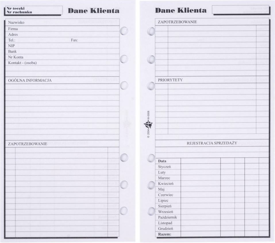 Wkład do organizera ST dane klienta EAN: 5904210000087 Opakowanie: folia Producent: Antra Rok wydania: 2021 Wymiary: 171x96x2 mm Wkład do organizera ST dane klienta