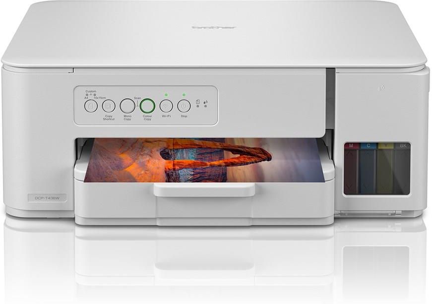 Brother DCP-T436W Specyfikacja produktu Drukuj, kopiuj, skanuj Łączność bezprzewodowa WiFi Drukuj do 16 obrazów na minutę Automatyczny podajnik papieru do 150 arkuszy oraz podajnik ręczny Drukuj bezpośrednio z lub skanuj do komputera i aplikacji mobilnej  Maksymalna dostępna wydajność …