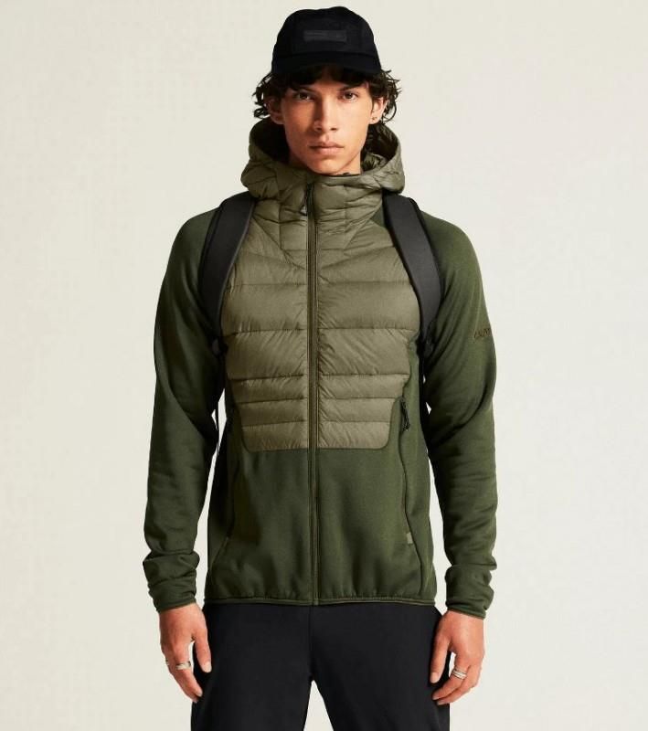 CRAFT ADV EXPLORE HYBRID męska kurtka sportowa kurtka Craft Hybrid to ciepła i wszechstronna kurtka przejściowa idealna jako warstwa zewnętrzna w łagodniejszych temperaturach świetna jako warstwa środkowa pod kurtką typu shell w chłodniejszych warunkach ta wielofunkcyjna kurtka hybrydowa łączy lekką pikowaną izolację puchową na górnej części ciała reszta kurtki ze szczotkowanym polarem Power Fleece na rękawach, bokach i dolnej części ciała wszechstronna kurtka, która zapewnia doskonałe ciepło, wydajne odprowadzanie wilgoci kurtka hybrydowa ma również lekko wydłużony tył dla lepszej ochrony dwie boczne kieszenie zapinane na suwak do bezpiecznego i wygodnego przechowywania kluczy, telefonu wodoodporny materiał wierzchni ripstop wykonany z poliestru z recyklingu na górnej części ciała i kapturze bardzo dobra ochrona przed wiatrem Materiał:-Górna część ciała: 100% poliamid (z recyklingu)-Dół ciała: 94% poliester (z recyklingu), 6% elastan-Wypełnienie: 10% pierze, 90% puch