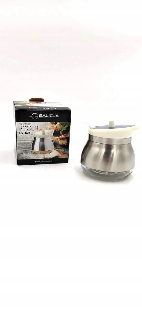 CUKIERNICA PAOLA KREM wykonana z wysokiej jakości szkła transparentnego Cukiernica PAOLA została wykonana z wysokiej jakości szkła transparentnego. Idealnie sprawdzi się jako przechowanie cukru białego czy brązowego. Posiada w zestawie łyżeczkę z tworzywa sztucznego, oraz przykrywkę. Cukiernica PAOLA będzie idealną ozdobą kuchennego blatu, jadalni czy też pokoju dziennego. Jej wygodna forma i kształt sprawiają, że cukier nie wysypuje się z cukiernicy. Pojemność: 270ml Wymiary długość: 9,3cm szerokość: 9,3cm wysokość: 9,2cm