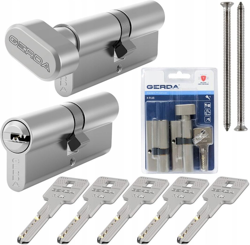 Zestaw 2 wkładek z zabierakiem H - PLUS GERDA 5-kluczy Zawartość zestawu Wkładka antywłamaniowa 30/45 klucz - klucz nikiel satyna Gerda H PLUS Wkładka antywłamaniowa G45/30 gałka- klucz nikiel satyna Gerda H PLUS 5 kluczy nawiercanych 2x śruba mocująca Opakowanie typu blister 1) Wkładka Klucz - …