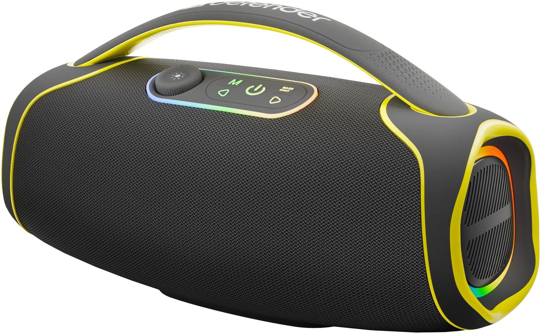 Defender BEATBOX - Potężny Głośnik Bluetooth 100W - Procesor DSP, Radio FM Twoja impreza. Twój rytm. Beatbox 100. Potężny, przenośny głośnik Bluetooth 5.3 z podświetleniem LED, wbudowanym odtwarzaczem MP3 oraz tunerem FM. Obsługuje pamięci USB oraz karty microSD, co pozwala na słuchanie muzyki bez potrzeby korzystania z telefonu czy komputera. Dzięki funkcji TrueWireless istnieje możliwość sparowania dwóch głośników tego samego modelu, aby stworzyć bezprzewodowy zestaw stereo z prawdziwym efektem przestrzennym. Stopień ochrony IPX5 zapewnia odporność na zachlapania, co czyni ten głośnik idealnym wyborem na imprezy plenerowe, plażę, ogród czy balkon. Głośnik Bluetooth Defender Beatbox 100 to nie tylko solidna moc i czysty dźwięk – to także stylowy wygląd, wszechstronność i wygoda w każdej sytuacji. Zalety głośnika Stopień ochrony IPX5 Odporność na silne strumienie wody – woda kierowana na obudowę pod dowolnym kątem nie powoduje uszkodzeń ani problemów z działaniem urządzenia. Bluetooth 5.3 Nowoczesny standard, który podwaja szybkość transmisji danych, zwiększa zasięg czterokrotnie oraz znacząco obniża zużycie energii w porównaniu do wcześniejszych wersji. Wejście audio AUX (3,5 mm jack) Możliwość podłączenia do komputera, telefonu lub odtwarzacza za pomocą kabla AUX, aby korzystać z głośnika w trybie przewodowym. Sloty na USB i karty MicroSD Obsługa standardowych nośników pamięci USB oraz MicroSD umożliwia odtwarzanie muzyki bez konieczności korzystania z telefonu lub komputera – wystarczy włożyć nośnik z nagranymi plikami WAV lub MP3. Wbudowany odtwarzacz MP3 Bezpośrednie odtwarzanie muzyki z pamięci USB, kart SD lub MicroSD. True Wireless Stereo (TWS) Opcja sparowania dwóch głośników tego samego modelu w bezprzewodowy system stereo 2.0, zapewniający lepszą przestrzenność dźwięku. Złącza do mikrofonu Możliwość podłączenia mikrofonu do głośnika, co rozszerza jego funkcjonalność. Podświetlenie diodami LED Efektowne i nowoczesne podświetlenie, które podkreśla design i dodaje stylu. Mocny i wysokiej jakości dźwięk Głośnik zapewnia czyste brzmienie z mocnym basem i wyraźnymi tonami średnimi oraz wysokimi. Poręczny uchwyt Ułatwia przenoszenie głośnika i korzystanie z niego w różnych miejscach. Wbudowany tuner FM Możliwość słuchania ulubionych stacji radiowych bezpośrednio na głośniku. Equalizer i wbudowany procesor DSP Zaawansowana obróbka dźwięku pozwala na optymalizację brzmienia i dostosowanie go do różnych gatunków muzycznych. Wydłużony czas pracy baterii Dłuższy czas odtwarzania muzyki, idealny na długie wyjścia i imprezy. Powłoka gumowana (soft-touch) Matowa, przyjemna w dotyku powierzchnia zwiększa komfort użytkowania i nadaje urządzeniu elegancki wygląd. Złącze USB Type-C Złącze umożliwia wygodne podłączanie kabla bez ryzyka uszkodzenia, co zwiększa trwałość portu. Dlaczego warto wybrać nasz głośnik? Ten głośnik bezprzewodowy Defender to doskonałe połączenie nowoczesnej technologii, wygody użytkowania oraz solidnej jakości dźwięku. Dzięki mocnemu modułowi Bluetooth 5.3, szerokiej kompatybilności z różnymi nośnikami i funkcji True Wireless Stereo, zapewnia pełną swobodę i elastyczność podczas słuchania muzyki. Odporność na wodę (IPX5) i wytrzymała, gumowana powłoka sprawiają, że głośnik świetnie sprawdzi się w każdych warunkach — zarówno podczas codziennego użytku w domu, jak i na imprezach na świeżym powietrzu. Wbudowane funkcje, takie jak tuner FM, odtwarzacz MP3 czy wejście AUX, sprawiają, że jest to urządzenie wielozadaniowe, które sprosta oczekiwaniom nawet najbardziej wymagających użytkowników. Wybierając ten model, inwestujesz w wygodę, wszechstronność i doskonały dźwięk, który będzie Ci towarzyszyć wszędzie tam, gdzie zechcesz — od relaksu w domu po aktywności na zewnątrz. Specyfikacja głośnika Rodzaj: głośnik bezprzewodowy Seria produktów: Dla domu i na zewnątrz Typ: aktywny Moc wyjściowa (RMS): 100 W Stosunek sygnał/szum: 95 dB Zakres częstotliwości: 120 – 18 000 Hz Schemat dźwiękowy: wejście stereo Liczba pasm częstotliwości: 2 Liczba głośników: 4 szt. Głośniki średnio-niskotonowe: 2 x 4" Opór elektryczny głośników: 4 Ω Głośniki wysokotonowe (HF): 2 x 1,5" Impedancja głośnika wysokotonowego: 4 Ω Materiał membrany: cellulose Średnica magnesów: 2 x (79x15) mm + 2 x (40x8) mm Obudowa akustyczna: z pasywnym emiterem Wbudowany pasywny emiter: tak Wejściowa czułość: 800 mV Nieliniowy współczynnik zniekształceń (THD): 10% Procesor DSP: tak Łączność i wejścia audio Bluetooth: 5.3 Zasięg działania Bluetooth: 10 m Profile Bluetooth: A2DP True Wireless Stereo (TWS): tak Funkcja „wolne ręce”: brak Wejście AUX (3,5 mm jack): tak Wejście mikrofonu: 6,3 mm jack (1 wejście) Złącza: 6,3 mm jack, Micro-SD, Type-C, USB, AUX Odtwarzanie i multimedia Wbudowany odtwarzacz MP3: tak Obsługa kart microSD: tak (do 64 GB) Obsługa pamięci flash USB: tak (do 64 GB) Obsługiwane formaty audio: MP3 System plików obsługiwany: FAT32 Equalizer: Bass Dodatkowe funkcje Wbudowany tuner FM: tak Zakres częstotliwości FM: 87,5 – 108 MHz Antena FM: kabel zasilający pełni funkcję anteny Panel sterowania na obudowie: tak Podświetlenie: dioda LED, 6 trybów efektów świetlnych, możliwość wyłączenia podświetlenia Czas automatycznego wyłączenia po zerwaniu Bluetooth: 10 min Funkcje podczas ładowania: brak Funkcjonuje jako powerbank: brak Wyświetlacz: brak Pilot zdalnego sterowania: brak Zasilanie i bateria Typ baterii: litowo-jonowa (format 21700, 3,7 V, 3000 mAh – 4 szt., połączenie szeregowo-równoległe) Pojemność baterii: 6000 mAh Napięcie baterii: 7,4 V Czas ładowania: 8 godzin Czas pracy przy 50% głośności: 15 godzin Czas pracy przy 75% głośności: 12 godzin Zużycie energii w trybie czuwania: 1