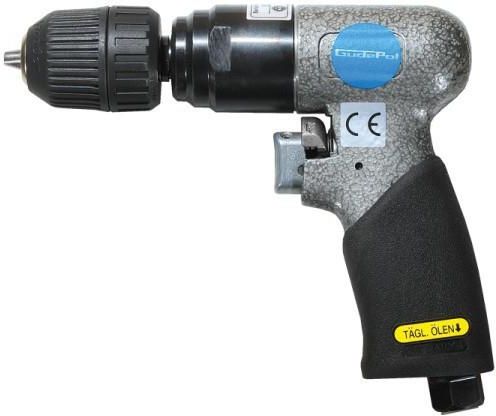 Cechy wiertarki: Wiertarka pneumatyczna, dwukierunkowa z uchwytem automatycznym. Kompaktowa obudowa oraz mała waga zapewniają wysoki komfort pracy. Niezawodność i żywotność wiertarki zapewnia planetarna przekładnia z mosiężnymi tulejkami. Łatwa konserwacji.