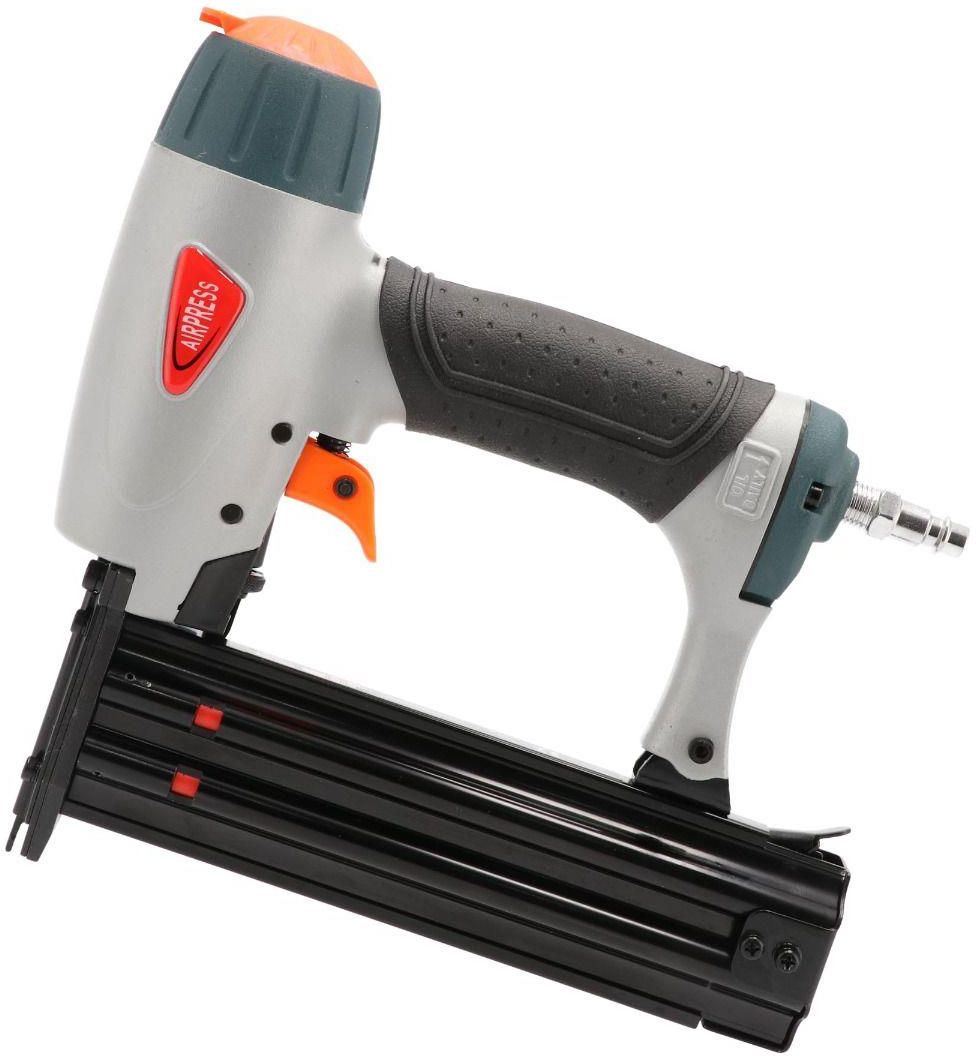 Ten pistolet do gwoździ (model 45438-5) ma pojemność 100 gwoździ i nadaje się do gwoździ o długości od 20 do 64 mm. Pistolet do gwoździ jest wyjątkowo odpowiedni do cięższych prac wewnętrznych, takich jak kratki do sufitów, lekkie szalunki, drzwi, podłogi, płyty OSB, szafki itp. Pistolet do gwoździ ma ustawienie głębokości, dzięki czemu gwoździe nie penetrują, gdy są stosowane do cienkich lub miękkich materiałów. . Pistolet do wbijania gwoździ jest wyposażony w regulowane pokrętło odciążające powietrze podczas użytkowania i ma gumowy uchwyt zapewniający pewny chwyt. Ponadto gumowy uchwyt zapewnia ruch sprężonego powietrza na zimno. Pistolet do gwoździ jest wyposażony w osłonę nosa (aby zapobiec nieoczekiwanemu poluzowaniu się paznokci). Pistolet do gwoździ ma stalowy uchwyt na przelotkę (zapobiega uszkodzeniu drutu w aluminium pistoletu do gwoździ), jest wyposażony w gumę zabezpieczającą, aby zapobiec zadrapaniom na materiale, a ładowarka pokazuje, ile gwoździ jest jeszcze dostępnych. Ten pistolet do paznokci jest dostarczany w solidnej walizce z akcesoriami i jasnymi instrukcjami. Pistolet do gwoździ waży 1,6 kg i pracuje pod maksymalnym ciśnieniem 6,5 / 7 barów.
