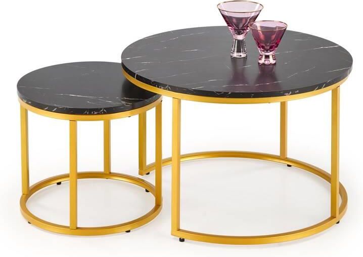 Halmar Paola Zestaw 2 Ław Czarny Marmur Złoty Opole