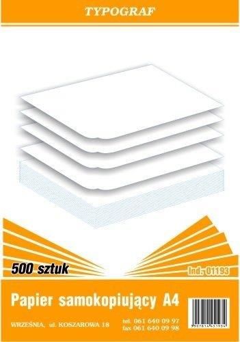 Papier samokopiujący A4 TypografPapier samokopiujący, format: A 4, samokopiujący, 500 szt., 1193 Format: A4 Rodzaj: samokopiujący Opakowanie: 500szt Kod: /01193/"Nr oferty xSale TP249