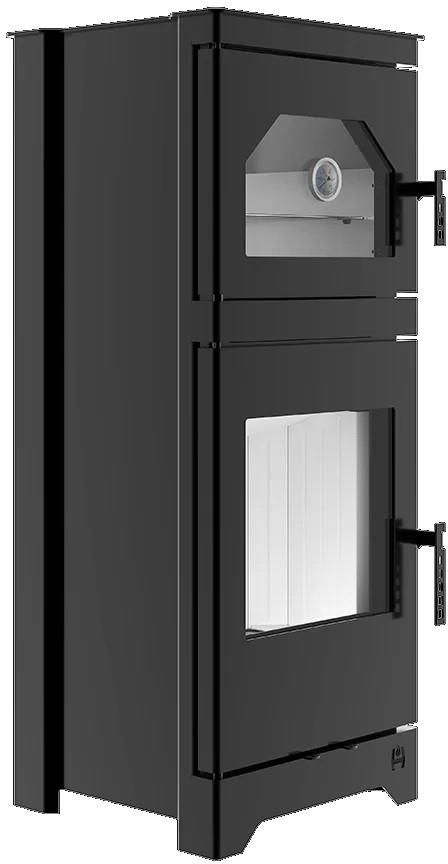 Hitze Lynx O Hitze Lynx O to nowoczesny piec wolnostojący, który łączy w sobie efektywność energetyczną oraz elegancki design. Dzięki innowacyjnym technologiom, ten model nie tylko zapewnia komfort cieplny, ale także stanowi stylowy element aranżacji wnętrz. Czarne wykończenie i solidna konstrukcja sprawiają, że Hitze Lynx O doskonale wpisuje się w różnorodne style, oferując jednocześnie wysoką wydajność grzewczą. Materiał i rodzaj paliwa Model Hitze Lynx O wyróżnia się solidną konstrukcją wykonaną z wysokiej jakości stali kotłowej P265GH. Ten materiał nie tylko zapewnia trwałość, ale również estetyczny wygląd, który doskonale wpisuje się w nowoczesne trendy. Czarne wykończenie pieca sprawia, że jest on uniwersalnym dodatkiem do różnorodnych stylów aranżacyjnych. Urządzenie przeznaczone jest do spalania sezonowanego drewna drzew liściastych o wilgotności od 12% do 20%, co wpływa na jego wysoką efektywność grzewczą i czyni je bardziej przyjaznym dla środowiska. Model ten spełnia rygorystyczne normy EKOPROJEKT, co jest istotne dla osób dbających o ekologię. Wymiary i moc grzewcza Kompaktowe wymiary tego pieca - 453 mm szerokości, 1154 mm wysokości oraz 453 mm głębokości - czynią go idealnym rozwiązaniem do różnych przestrzeni. Dzięki tym proporcjom można go swobodnie ustawić zarówno w przestronnych salonach, jak i w mniejszych pomieszczeniach. Jego moc nominalna wynosi 7 kW, co pozwala na efektywne ogrzewanie pomieszczeń o objętości do 120 m³. To doskonałe rozwiązanie dla tych, którzy szukają efektywnego i ekonomicznego sposobu na ogrzewanie swojego domu. Wydajność i system spalania Wysoka wydajność cieplna pieca, wynosząca aż 83%, czyni go wyjątkowo efektywnym źródłem ciepła. Innowacyjne rozwiązania, takie jak akumulacyjne materiały wyłożenia komory spalania oraz zaawansowany system doprowadzania powietrza, pozwalają na osiągnięcie doskonałej efektywności spalania. Wbudowana kurtyna powietrzna przy szybie kominkowej oraz otwory na tylnej ścianie komory zwiększają efektywność wykorzystania energii, minimalizując jednocześnie straty ciepła. Regulacja mocy i zabezpieczenia Ten model łączy w sobie funkcjonalność z bezpieczeństwem. Użytkownicy mają do dyspozycji precyzyjną regulację mocy oraz temperatury za pomocą dwóch niezależnych dźwigni. Umożliwia to dostosowanie pracy pieca do indywidualnych potrzeb oraz aktualnych warunków atmosferycznych. Dodatkowo, piec został wyposażony w szereg funkcji zabezpieczających, takich jak automatyczne wyłączanie urządzenia w przypadku zakłóceń w przepływie spalin. To znacznie zwiększa bezpieczeństwo użytkowania oraz daje pewność, że piec będzie działał efektywnie. Sposób montażu Piec wolnostojący Hitze Lynx O charakteryzuje się wszechstronnością w zakresie montażu. Użytkownicy mogą podłączyć czopuch zarówno od góry, jak i od tyłu, co pozwala na elastyczność w aranżacji przestrzeni. Istotną zaletą jest możliwość integracji z systemem dystrybucji gorącego powietrza (DGP), co umożliwia efektywne ogrzewanie sąsiednich pomieszczeń, zwiększając komfort cieplny w całym domu. Cechy wyróżniające Warto zwrócić uwagę na poniższe atuty, które wyróżniają ten model: Wysoka moc grzewcza: 7 kW, idealna do pomieszczeń o objętości do 120 m³, Ekologiczne spalanie: spełnia normy EKOPROJEKT i normy BImSchV II, Szerokie możliwości montażu: możliwość podłączenia czopucha od góry lub z tyłu, Innowacyjne rozwiązania: akumulacyjne materiały i system doprowadzania powietrza, Elegancki design: wysokiej jakości stal oraz czarne wykończenie pasujące do wielu wnętrz, Dodatkowy piekarnik: możliwość jednoczesnego ogrzewania i gotowania, Regulacja dopływu powietrza: umożliwia precyzyjne dostosowanie do indywidualnych potrzeb. Hitze Lynx O to nie tylko piec; to rozwiązanie, które łączy w sobie funkcjonalność, ekologię oraz estetykę, dostosowując się do potrzeb współczesnych użytkowników. Użytkowanie tego urządzenia to krok w stronę bardziej komfortowego i nowoczesnego domu.
