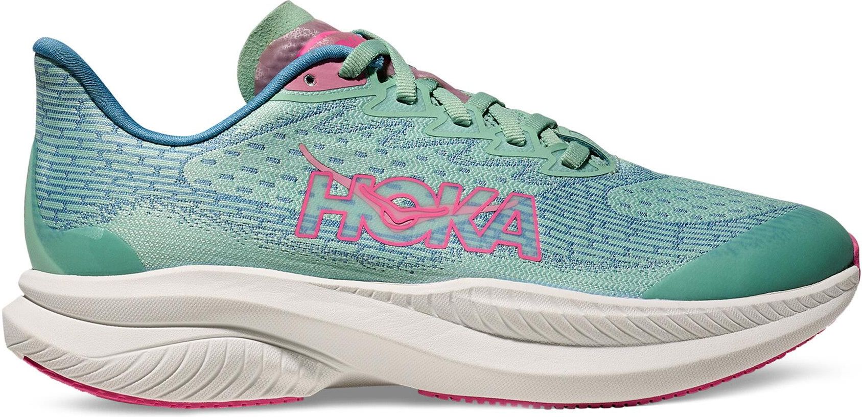 Buty do biegania dziecięce HOKA Mach 6 jadeite/alpine blue to idealny wybór dla młodych biegaczy poszukujących niezawodnego obuwia do treningów na asfaltowych nawierzchniach. Dzięki przewiewnej siateczce, z której wykonano cholewkę, buty zapewniają doskonałą oddychalność, co przekłada się na komfort noszenia nawet podczas intensywnego wysiłku fizycznego. Standardowy krój cholewki sprzyja wygodnemu dopasowaniu do stopy, co jest istotne dla młodych biegaczy, szczególnie podczas długotrwałych treningów. Zaawansowane technologie Buty do biegania dziecięce HOKA Mach 6 jadeite/alpine blue wyposażono w nowoczesne technologie, które wspierają młodych sportowców. Technologia MetaRocker™ zastosowana w tych butach wspomaga naturalny ruch stopy, co ułatwia rozwijanie prędkości i zapewnia płynność biegu. Podeszwa środkowa wykonana z octanu etylenowo-winylowego (EVA) gwarantuje odpowiednią amortyzację, co jest kluczowe dla ochrony młodych stawów podczas biegania. Bezpieczeństwo i komfort Elementy odblaskowe w butach do biegania dziecięcych HOKA Mach 6 jadeite/alpine blue zwiększają widoczność młodego biegacza podczas treningów odbywających się o zmroku lub w warunkach ograniczonej widoczności. Podeszwa zewnętrzna z gumy zapewnia doskonałą przyczepność na asfaltowych nawierzchniach, co zwiększa pewność kroku i minimalizuje ryzyko poślizgnięć. Tradycyjne sznurowanie pozwala na precyzyjne dopasowanie obuwia do stopy, co dodatkowo podnosi komfort użytkowania. Buty do biegania dziecięce HOKA Mach 6 - cechy: Przewiewna siateczka zapewniająca doskonałą oddychalność; Krój standard fit zapewniający wygodne dopasowanie; Przeznaczone do treningów na asfaltowych nawierzchniach; Technologia MetaRocker™ wspomagająca naturalny ruch stopy; Podeszwa środkowa z octanu etylenowo-winylowego (EVA) gwarantująca amortyzację; Podeszwa zewnętrzna z gumy zapewniająca przyczepność; Elementy odblaskowe zwiększające widoczność w warunkach ograniczonej widoczności; Tradycyjne sznurowanie pozwalające na precyzyjne dopasowanie obuwia.