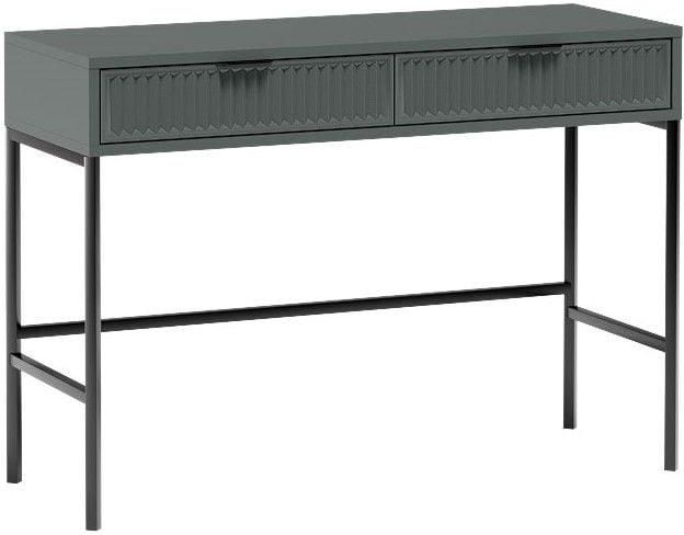 Podnieś Standard Swojego Domu z Kolekcją STYLES Potrzebujesz kolekcję, która łączy style we wnętrzu? Proste i funkcjonalne bryły które sprawdzą się w salonie, sypialni i jadalni? W takim razie kolekcja STYLES jest strzałem w dziesiatkę. Nowoczesne kolory, które są aktualnym hitem. Metalowe, czarne nogi dodające lekkości i przestrzeni w pomieszczeniach oraz wzór na frontach w postaci frezowanych ryfli to niewatpliwie atuty kolekcji STYLES. Zdecyduj się na zakup propozycji z kolekcji STYLES, a Twoje wnętrze zyska nowoczesny i elegancki wygląd. Natomiast praktyczne wnętrze i solidna konstrukcja kolekcji zapewnią Ci wygodę użytkowania przez długi czas. Toaletka STYLES S-9 zachwyca swoim odcieniem zieleni green stone, kolor ten doskonale harmonizuje z czarnymi akcentami. Czarny uchwyt i detale sprawiają, że toaletka również staje się prawdziwym elementem ozdobnym w Twoim wnętrzu. Szuflady toaletki dają Ci dyskretne miejsce na przechowywanie Twoich kosmetyków, biżuterii i innych niezbędnych przedmiotów. Dzięki temu wszystko będzie uporządkowane i łatwo dostępne, pozwalając Ci skoncentrować się na swojej codziennej rutynie pielęgnacyjnej. Nie czekaj dłużej! Odkryj naszą kolekcję mebli i przekonaj się, jak możesz odmienić swoje wnętrze w prosty i efektowny sposób. Kup nasze meble już dziś i ciesz się nowym poziomem komfortu i stylu w swoim domu! Wybarwienie Green Stone Wymiary szerokość: 110 cm wysokość: 78 cm głębokość: 40,6 cm Materiał Korpus: wykonany z płyty laminowanej o grubości 18 mm Front: wykonany z płyty MDF o grubości 18 mm Informacje dodatkowe Frezowane ryfle na frontach dodające nowoczesności Obrzeże wzmocnione ABS Ciche domykanie szuflad Osadzona na eleganckich metalowych nóżkach Metalowe uchwyty Szuflady na pełnym wysuwie Tył mebla wykonany z płyty HDF Kolekcja STYLES dostępna jest również w pięknej, ciemnej tonacji INDIGO oraz jasnej tonacji CASHMERE. Sprawdź nasze pozostałe aukcję. Na pozostałych Naszych aukcjach znajdą Państwo pozostałe elementy pięknej kolekcji STYLES. Poniższe zdjęcia prezentują przykładową aranżacje