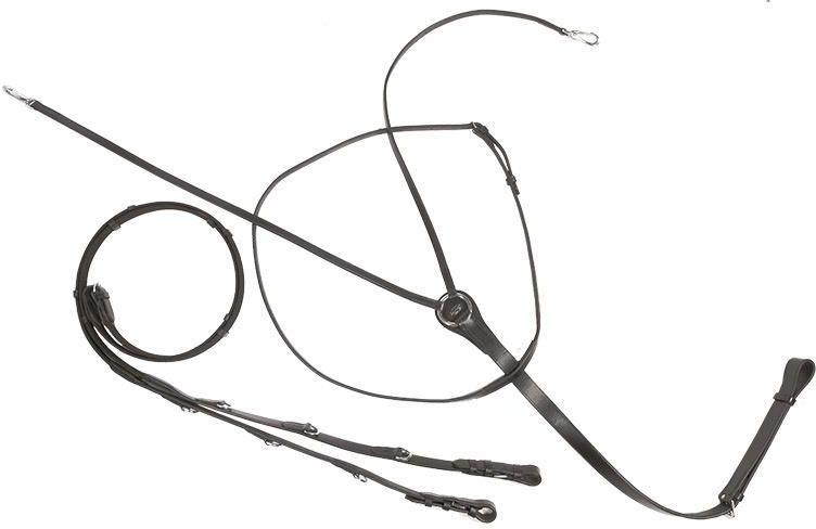 Wodze wykonane z wysokiej jakości skóry. Połączenie wytoku z klasycznymi wodzami. Posiadają po 3 pierścienie w kształcie litery D na każdej wodzy. Rozmiar: Pony, Full Kolor: czarny Okucia: srebrne Wodze Thiedemanna, zwane również kombinacją Thiedemanna, są połączeniem wytoku ze specjalnymi, …