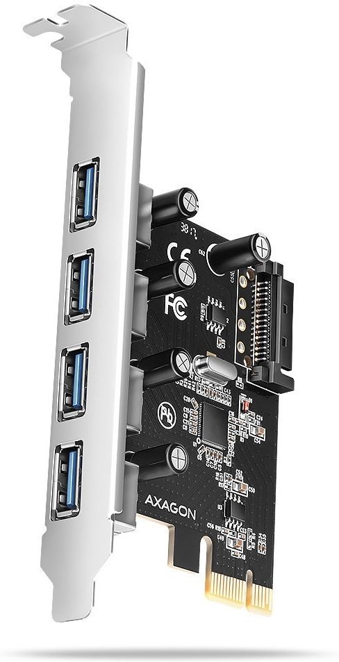 Karta PCI-Express AXAGON PCEU-430RS rozbuduje komputer stacjonarny o cztery porty wewnętrzne USB-A 5Gbps. Karta przeznaczona jest do szybkich i stabilnych transferów danych z prędkością do 5 Gb/s. Wszystkie cztery USB porty są wyprowadzona na śledz. Można podłączyć również cztery różne urządzenia obsługujące USB, takie jak drukarki, klawiatury, czytniki kart, dyski flash, zewnętrzne dyski twarde itp. Niezawodne zasilanie ze źródła PC przez złącze zasilania SATA. Kontroler USB jest osadzony chipsetem renomowanej spółki Renesas, charakteryzującym się sprawdzoną bezproblemową kompatybilnością i wsparciem UASP. Wejście: Interfejs PCI-Express 2.0, kompatybilny z PCI-Express 1.0a / 1.1 / 2.1 / 3.0 / 4.0. Ilość linii 1-Lane (x1), kompatybilny z x1 / x4 / x8 / x16 PCIe slotami. Przepuszczalność magistrali 1-Lane PCI-Express 2.0 aż 5 Gb/s. Wejście (zasilanie): Złącze zasilania SATA 15-pin męskie. Wyjście: 4x port zewnętrzny USB 5Gbps ze złączami USB typu A-F. Interfejs USB 5Gbps - wcześniej USB 3.2 Gen 1 / USB 3.0. Kompatybilny z USB 3.2 Gen 2, wstecznie kompatybilny z USB 2.0 a USB 1.1. Wsparcie szybkości transmisji 5000 / 480 / 12 / 1.5 Mb/s. W razie połączenia do magistrali PCI-Express wersja 1.0 teor. szybkość transmisji maks. 2500 Mb/s. Dalsze właściwości: Całkowite wsparcie Plug and Play. Wsparcie równoczesnej działalności urządzeń USB 5Gbps, USB 2.0 a USB 1.1. Odpowiada ostatecznej oficjalnej specyfikacji xHCI rewizji 1.0 od USB-IF. Wsparcie UASP (USB Attached SCSI) do szybszej transmisji danych w Windows 8 i nowszych. W pełni wspiera Hot Plug przyłączanie i odłączanie urządzeń USB za biegu. Wewnętrzne złącze zasilania SATA do zasilania kontrolera z zasilacza PC. Wykorzystany chipset Renesas PD720201. Wspierane systemy operacyjne: MS Windows XP / Vista / 7 / 8 / 8.1 / 10 / 11, Windows Server 2003 / 2008 / 2012 / 2016 / 2019 / 2022 (wspierane wszelkie wersje OS Windows 32- i 64-bitowe), Linux z jądrem 2.6.31 i wyższym. Uwaga: Sterowniki trzeba zainstalować tylko dla Windows XP / Vista / 7. Dla Linux, Windows 8 / 8.1 / 10, Server 2012 / 2016 / 2019 / 2022 i nowszych nie jest wymagana instalacja sterowników zewnętrznych, są już składnikiem systemu operacyjnego. Informacje o produkcie Rodzaj kontrolera USB 3.0 Interfejs PCIe Chipset Renesas PD720201 Porty 1 x Power SATA 15pin 4 x USB 3.0 Akcesoria w zestawie Kontroler PCI-Express ze standardowym śledziem, Podręcznik wielojęzyczny CZ / DE / DK / ENG / ESP / EST / FIN / FR / GR / HR / HU / IT / LT / LV / NL / NOR / PL / PT / RO / SK / SLO / SRB / SWE / TR / UA / ALB / BG / BOS / CN / ARA, Pakowane w pudełku kartonowym. Waga 50 g Oznaczenia